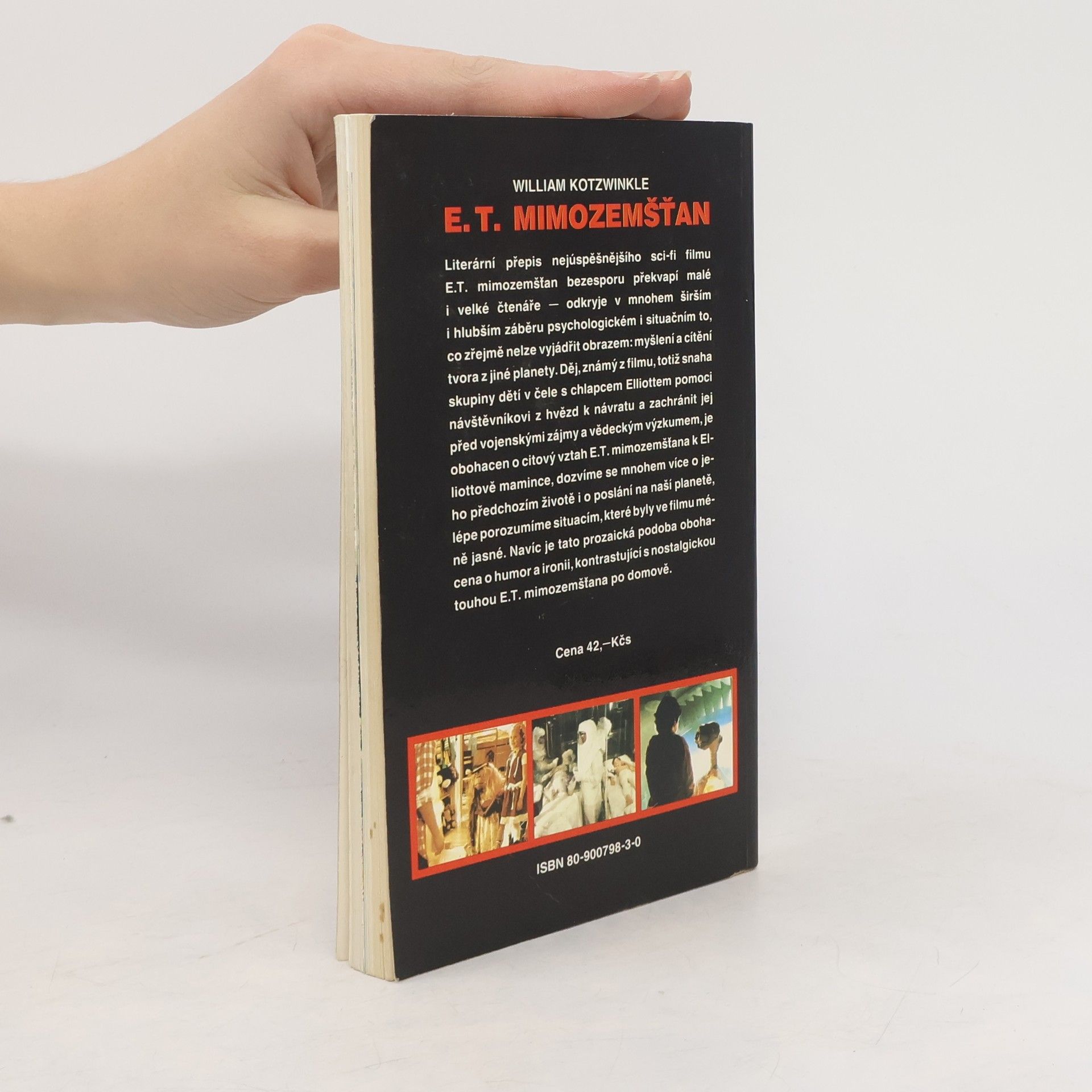 Literární přepis nejúspěšnějšího sci-fi filmu E.T. mimozemšťan bezesporu překvapí malé i velké čtenáře - odkryje v mnohém šírším i hlubším záběru psychologickém i situačním to, co zřejmě nelze vyjádřit obrazem: myšlení a cítění tvora z jiné planety. Děj, známý z filmu, totiž snaha skupiny dětí v čele s chlapcem Elliottem pomoci návštěvníkovi z hvězd k návratu a zachránit jej před vojenskými zájmy a vědeckým výzkumem, je obohacen o citový vztah E.T. mimozemšťana k Eliottově mamince, dozvíme se mnohem více o jeho předchozím životě i o poslání na naší planetě, lépe porozumíme situacím, které byly ve filmu méně jasné. Navíc je tato prozaická podoba obohacena o humor a ironii, kontrastující s nostalgickou touhou E.T. mimozemšťana po domově.