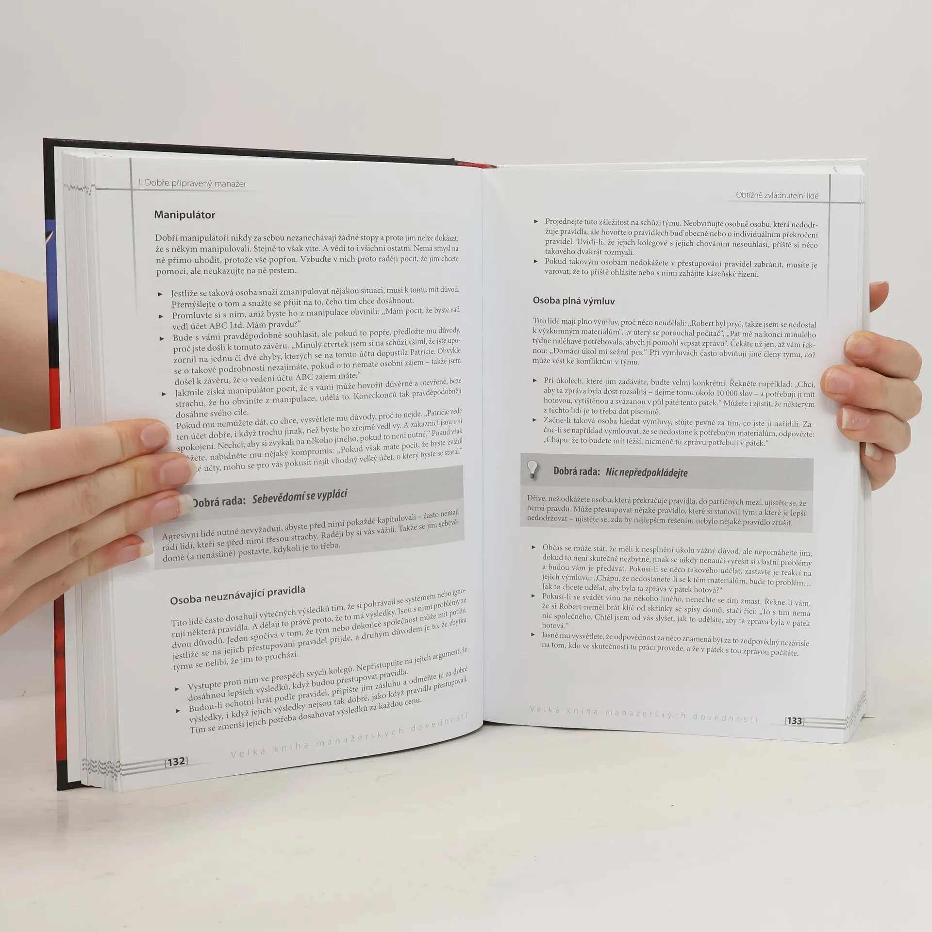 Tento praktický manuál pokrývá všechny hlavní situace, kterým musíte čelit při své práci. Potřebujete-li vybrat vhodného pracovníka, hodnotit a motivovat spolupracovníky, připravit prezentaci, projekt či rozpočet, vést týmové porady a koučovat, správně rozhodovat nebo zvládnout velké množství práce, dozvíte se spoustu rad k rychlému zapamatování a naprosto konkrétní tipy, co a jak říkat a dělat.