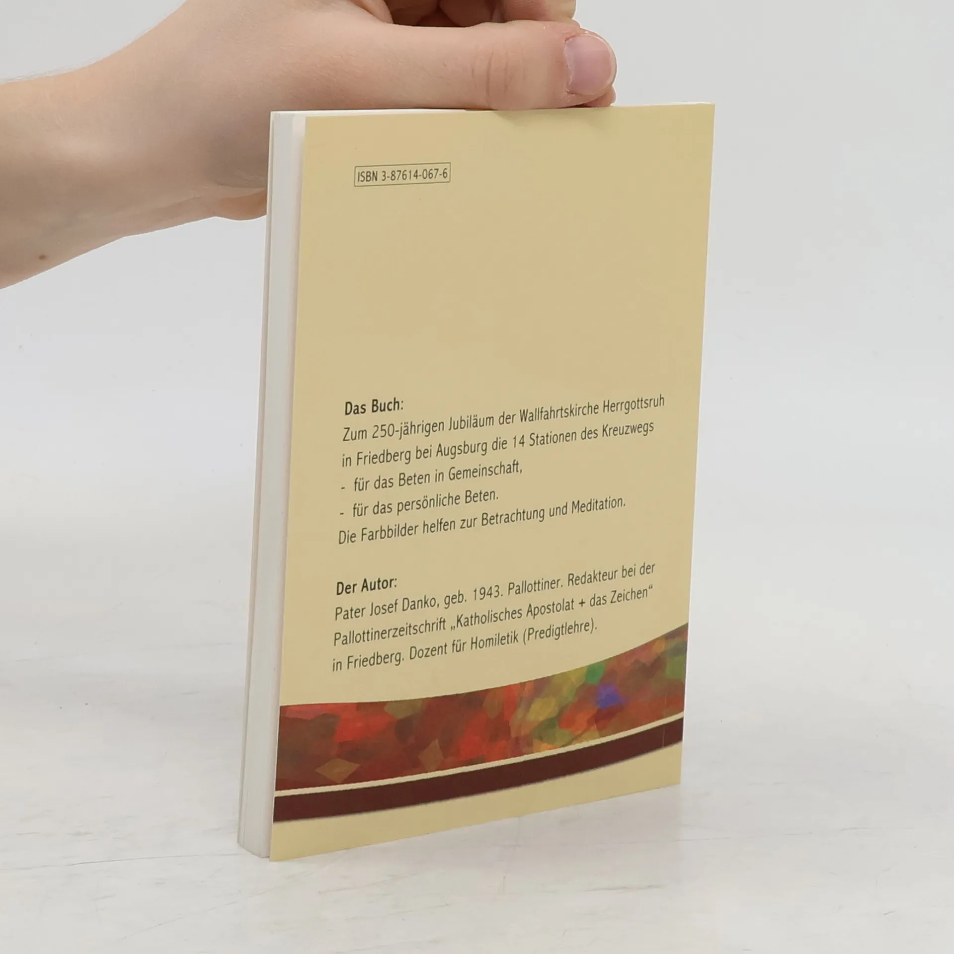 Mit den Bildern der Wallfahrtskirche “Herrgottruh” Zum 250-jährigen Jubiläum der Wallfahrtskirche Herrgottsruh in Friedberg bei Augsburg die 14 Stationen des Kreuzwegs – für das Beten in Gemeinschaft – für das persönliche Beten. Die Farbbilder der Wallfahrtskirche „Herrgottruh“ helfen zur Betrachtung und Meditation.