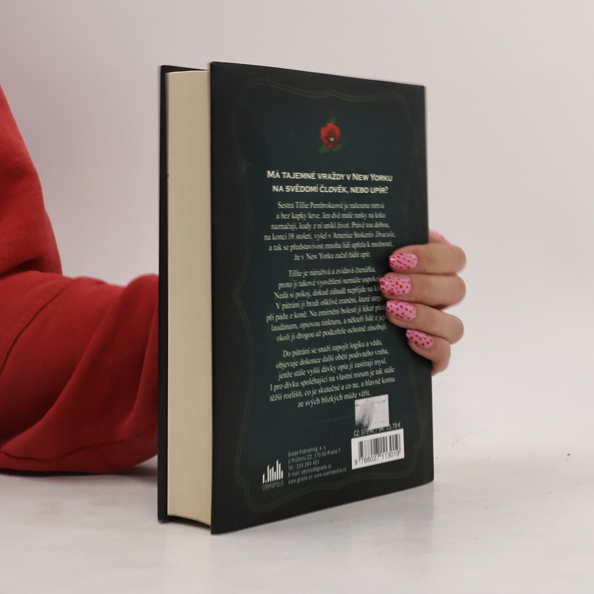 Má tajemné vraždy v New Yorku na svědomí člověk, nebo upír? Sestra Tillie Pembrokeové je nalezena mrtvá a bez kapky krve. Jen dvě malé ranky na krku naznačují, kudy z ní unikl život. Právě tou dobou, na konci 19. století, vyšel v Americe Stokerův Dracula, a tak se představivost mnoha lidí upřela k možnosti, že v New Yorku začal řádit upír. Tillie je náruživá a zvídavá čtenářka, proto ji takové vysvětlení sestřiny smrti nemůže uspokojit. Nedá si pokoj, dokud záhadě nepřijde na kloub. V pátrání ji brzdí ošklivé zranění, které utrpěla při pádu z koně. Na zmírnění bolestí jí lékař předepíše laudanum, opiovou tinkturu, a někteří lidé z jejího okolí ji drogou až podezřele ochotně zásobují. Do pátrání se snaží zapojit logiku a vědu, objevuje dokonce další oběti podivného vraha, jenže stále vyšší dávky opia jí zastírají mysl. I pro dívku spoléhající na vlastní rozum je tak stále těžší rozlišit, co je skutečné a co ne, a hlavně komu ze svých blízkých může věřit.