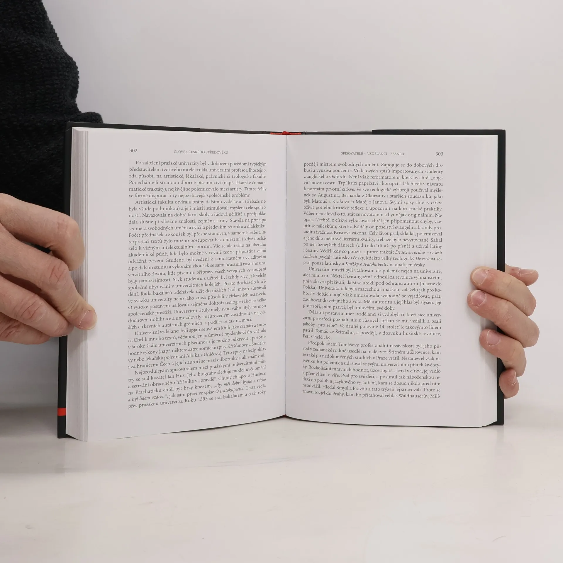 Esejisticky pojatá kolektivní práce českých medievalistů, jejíž ústřední postavou je člověk českého středověku. Ve dvaceti kapitolách se zde čtenář zevrubně seznámí se specifickým způsobem myšlení a jednání nejcharakterističtějších reprezentantů středověké společnosti (vesničan, měšťan, diplomat, rytíř, právník, lékař, kronikář, poutník, venkovský farář, prelát, heretik apod.). Kniha je doplněna bohatým obrazovým materiálem, jenž dodává jednotlivým sociálním typům středověkých Čechů skutečně plastický obraz.
