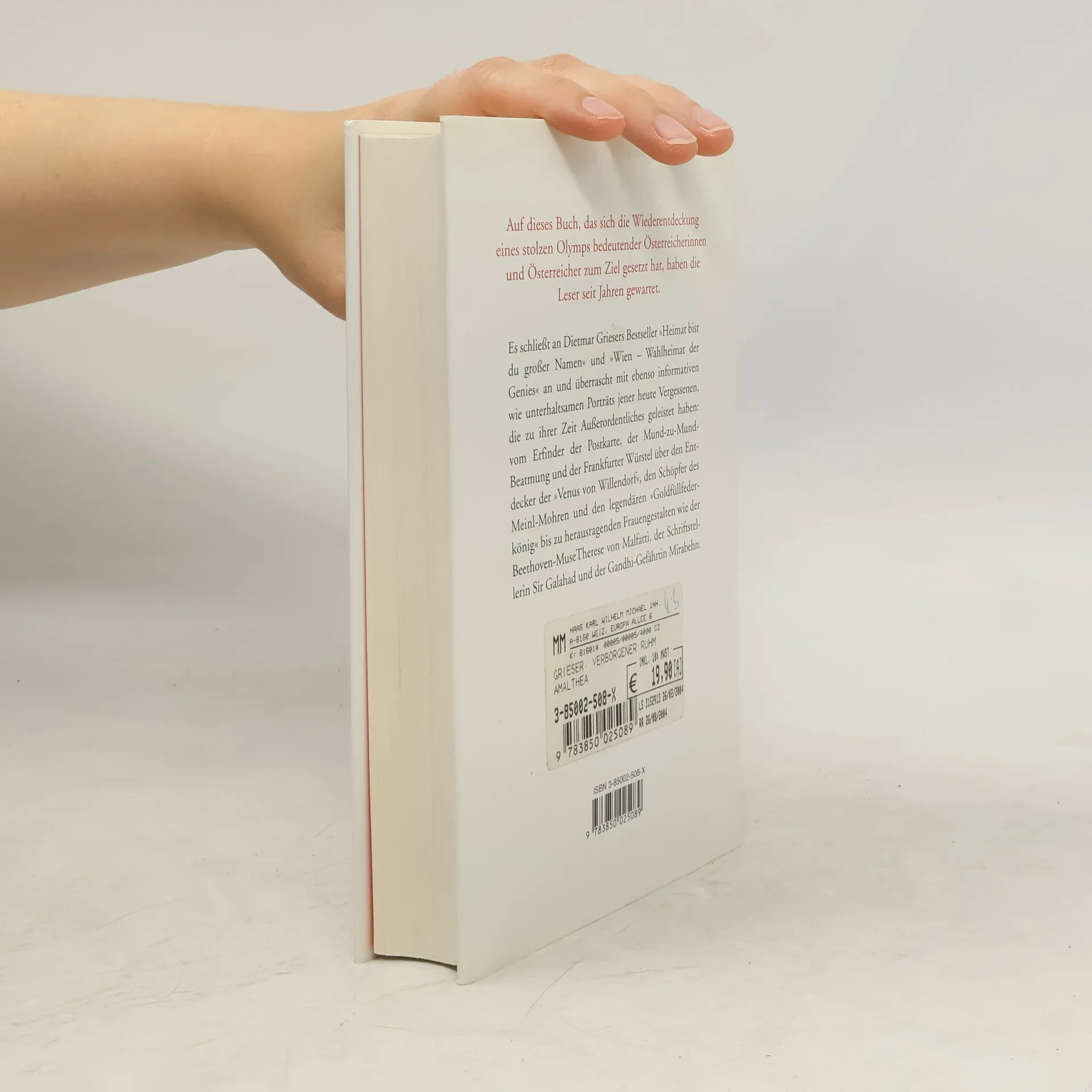 Auf dieses Buch, das sich die Wiederentdeckung eines stolzen Olymps bedeutender Österreicherinnen und Österreicher zum Ziel gesetzt hat, haben die Leser seit Jahren gewartet. Es schließt an Dietmar Griesers Bestseller „Heimat bist du großer Namen“ und „Wien - Wahlheimat der Genies“ an und überrascht mit ebenso informativen wie unterhaltsamen Porträts jener heute Vergessenen, die zu ihrer Zeit Außerordentliches geleistet haben: vom Erfinder der Postkarte, der Mund-zu-Mund-Beatmung und der Frankfurter Würstel über den Entdecker der „Venus von Willendorf“, den Schöpfer des Meinl-Mohren und den legendären „Goldfüllfederkönig“ bis zu herausragenden Frauengestalten wie der Beethoven-Muse Therese von Malfatti, der Schriftstellerin Sir Galahad und der Gandhi-Gefährtin Mirabehn.