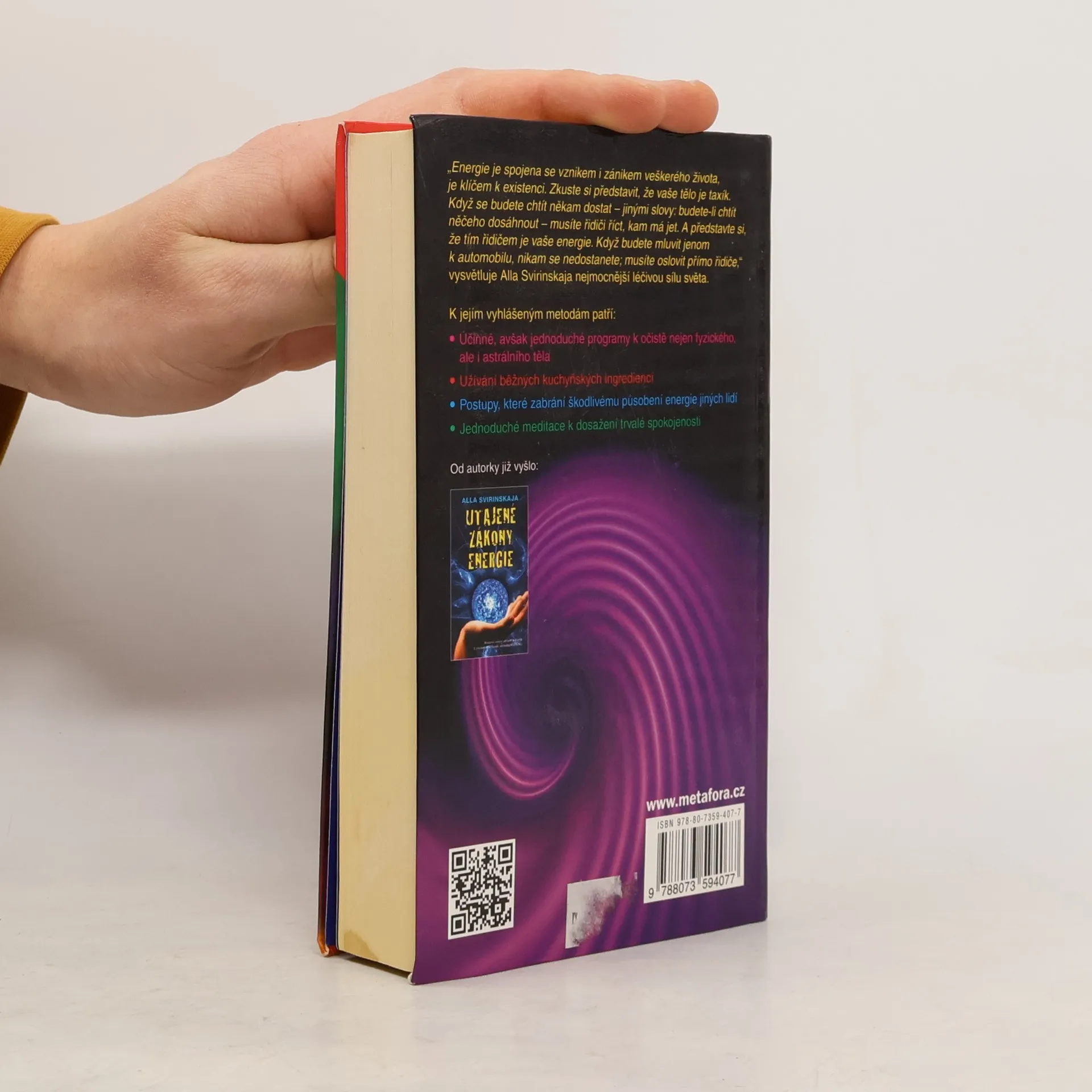 Tajemství celkové pohody spočívá ve zvládnutí životní energie. Všechny ty diety, potravinové doplňky, cvičení a terapie mohou fungovat (konečně!) jen tehdy, jestliže je dokážete propojit se samou podstatou energetického toku. Tato práce odhaluje zapomenutou moudrost léčitelských postupů z celého světa, včetně tradičních metod, jež Alla Svirinskaja zdědila po ruských předcích. Ve své knize nás poprvé seznamuje se svým unikátním postojem k dávným postupům - přizpůsobených ovšem modernímu člověku. Její ucelený přístup k fyzickým, emočním, mentálním a spirituálním oblastem změní váš život. Praktikujte Allin program krok za krokem a staňte se vlastními léčiteli.