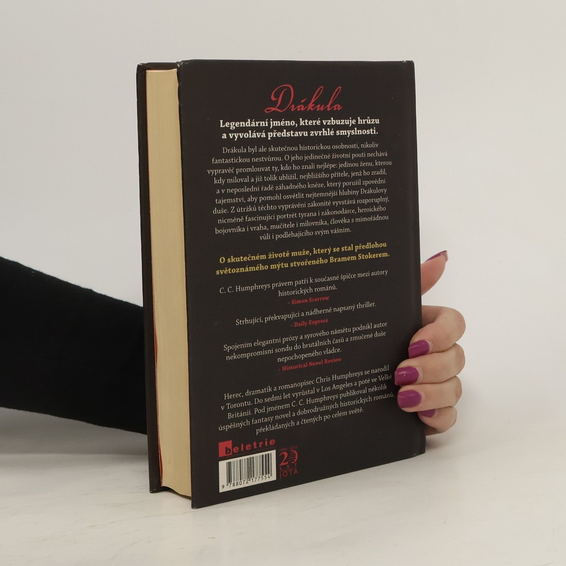 Fascinující příběh knížete a válečníka. DRÁKULA. Jméno, které v nás vyvolává představu hrůzy, zvrhlosti a temné smyslnosti. Skutečný Drákula byl však stejně fascinující jako děsivý a jeho životní příběh plný rozporů není příběhem nějaké nestvůry, ale příběhem člověka. Nepřátelé mu přezdívali „Tepeš“ — Napichovač. Stal se z něj národní hrdina.V zimě roku 1431 se narodil transylvánskému knížeti a otec ho pokřtil jménem „Vlad“, mezi lidmi se mu ale začalo říkat „Drakův syn“. V dějinách proslul jako Drákula. Tento román vypráví o skutečném životě muže, jenž se stal předlohou světoznámého mýtu. Vypráví o princi, válečníkovi, milenci, mučiteli, bojovníkovi a v neposlední řadě hrdinovi. Jeho pozoruhodný život překypuje vášní. Několik let byl zajatcem Turků, prošel mučením, bitvami, vítězstvím i zradou, ale až při svém posledním tažení, pod prapory Draka a Kříže, našel vykoupení za své nesčetné hříchy. C. C. Humphreys je autor 8 románů, z nichž jeden byl nominován na cenu CWA Steel Dagger.