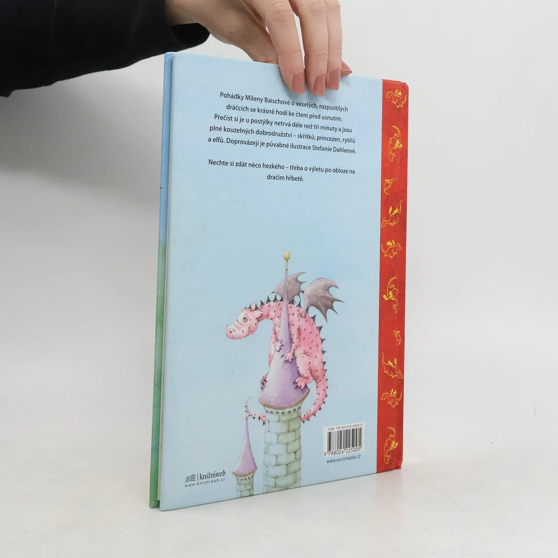 Pohádky Mileny Baischové o veselých, rozpustilých dráčcích se krásně hodí ke čtení před usnutím. Přečíst si je u postýlky netrvá déle než tři minuty a jsou plné kouzelných dobrodružství - skřítků, princezen, rytířů a elfů. Doprovázejí je půvabné ilustrace Stefanie Dahleové. Nechte si zdát něco hezkého - třeba o výletu po obloze na dračím hřbetě.