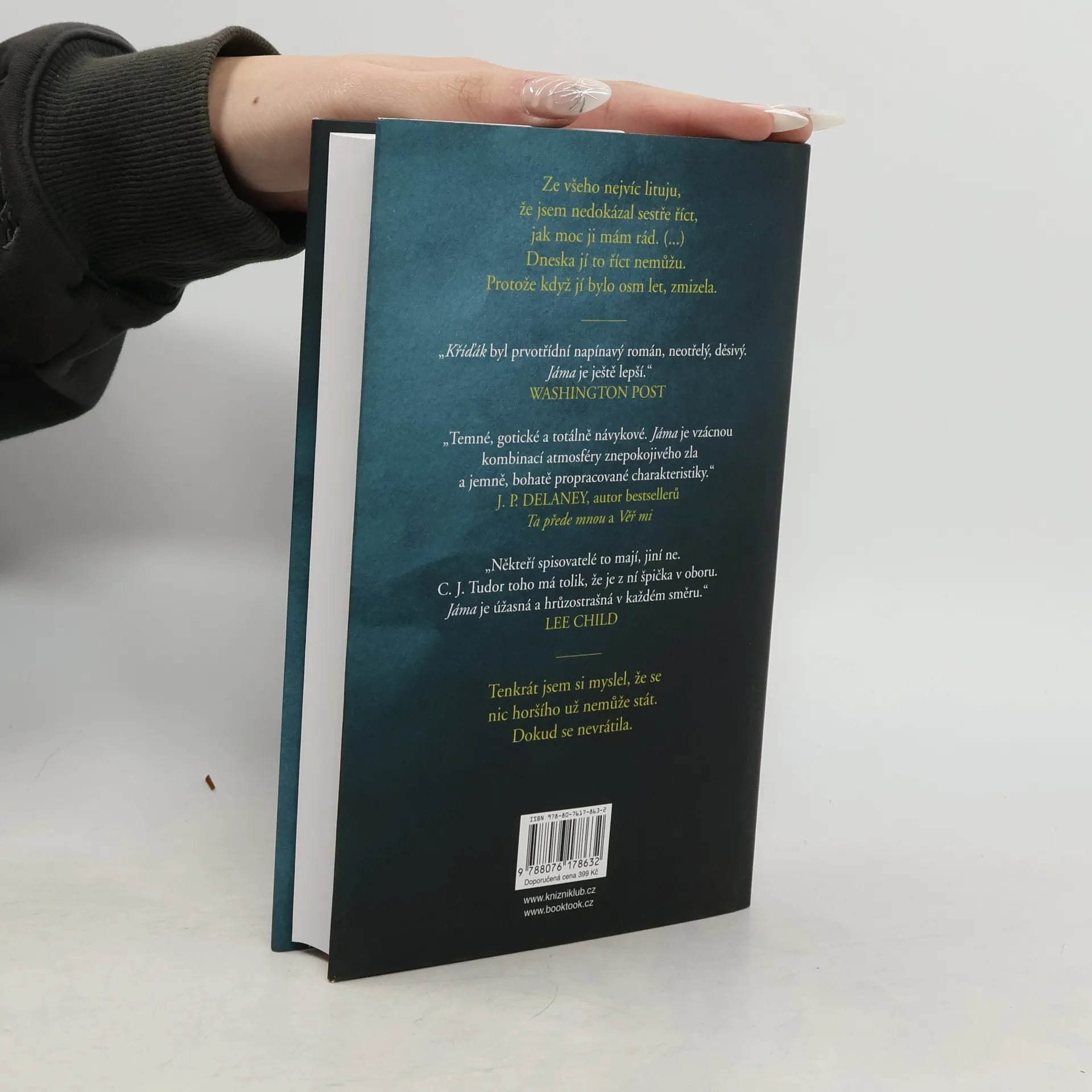 Kříďák, drásavý a děsivý psychothriller C. J. Tudor, se stal nejúspěšnější knižní prvotinou roku 2018. Nyní je tu Jáma, příběh, v němž autorka co do hrůznosti a napětí ještě přitvrdila... Joe se nikdy nechtěl vrátit do rodného Arnhillu. Ne potom, co zažil se svou partou: šikanu, zradu, sebevraždu. Ne potom, co zmizela jeho sestra Annie. Ne potom, co přišel o rodiče. Ale Joe nemá na vybranou. Protože to, co se kdysi stalo Annie, se děje zase. Protože minulost má ve zvyku se vracet. Protože nejhorší den Joeova života nebyl ten, kdy se jeho sestra ztratila, ale ten, kdy se vrátila.