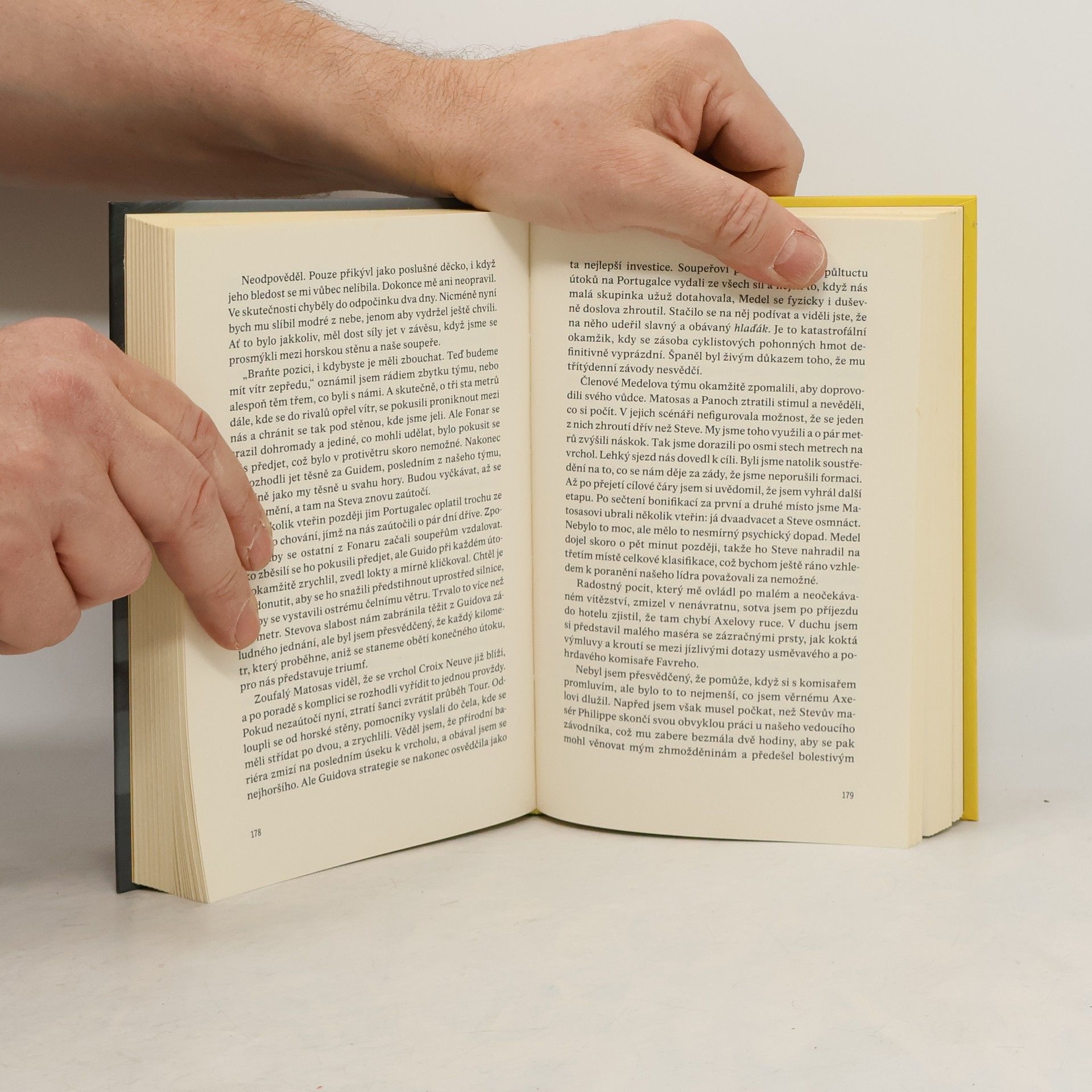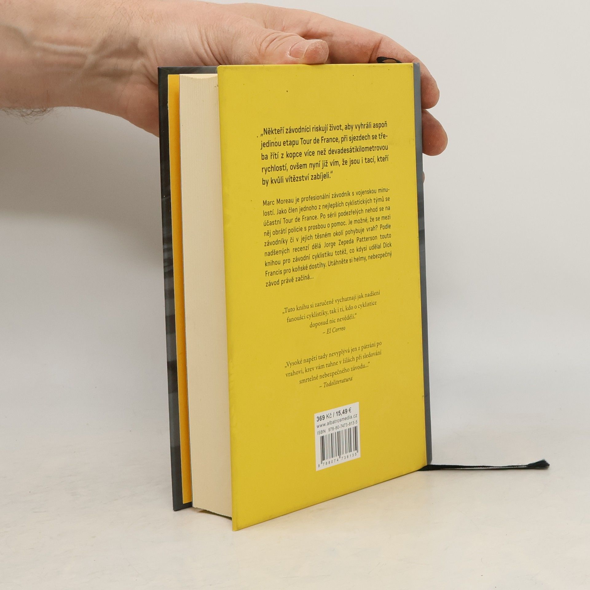Thriller z prostředí Tour de France „Někteří závodníci riskují život, aby vyhráli aspoň jedinou etapu Tour de France, při sjezdech se třeba řítí z kopce více než devadesátikilometrovou rychlostí, ovšem nyní vím, že jsou i tací, kteří by kvůli vítězství i zabíjeli.“ Marc Moreau je profesionální závodník s vojenskou minulostí. Jako člen jednoho z nejlepších cyklistických týmů se účastní Tour de France. Po sérií podezřelých nehod se na něj obrátí místní policie s prosbou o pomoc. Je možné, že se mezi závodníky či v jejich těsném okolí pohybuje vrah? Podle nadšených recenzí dělá Zepeda touto knihou pro závodní cyklistiku totéž, co kdysi udělal Dick Francis pro koňské dostihy. Utáhnětě si helmy, nebezpečný závod právě začíná...