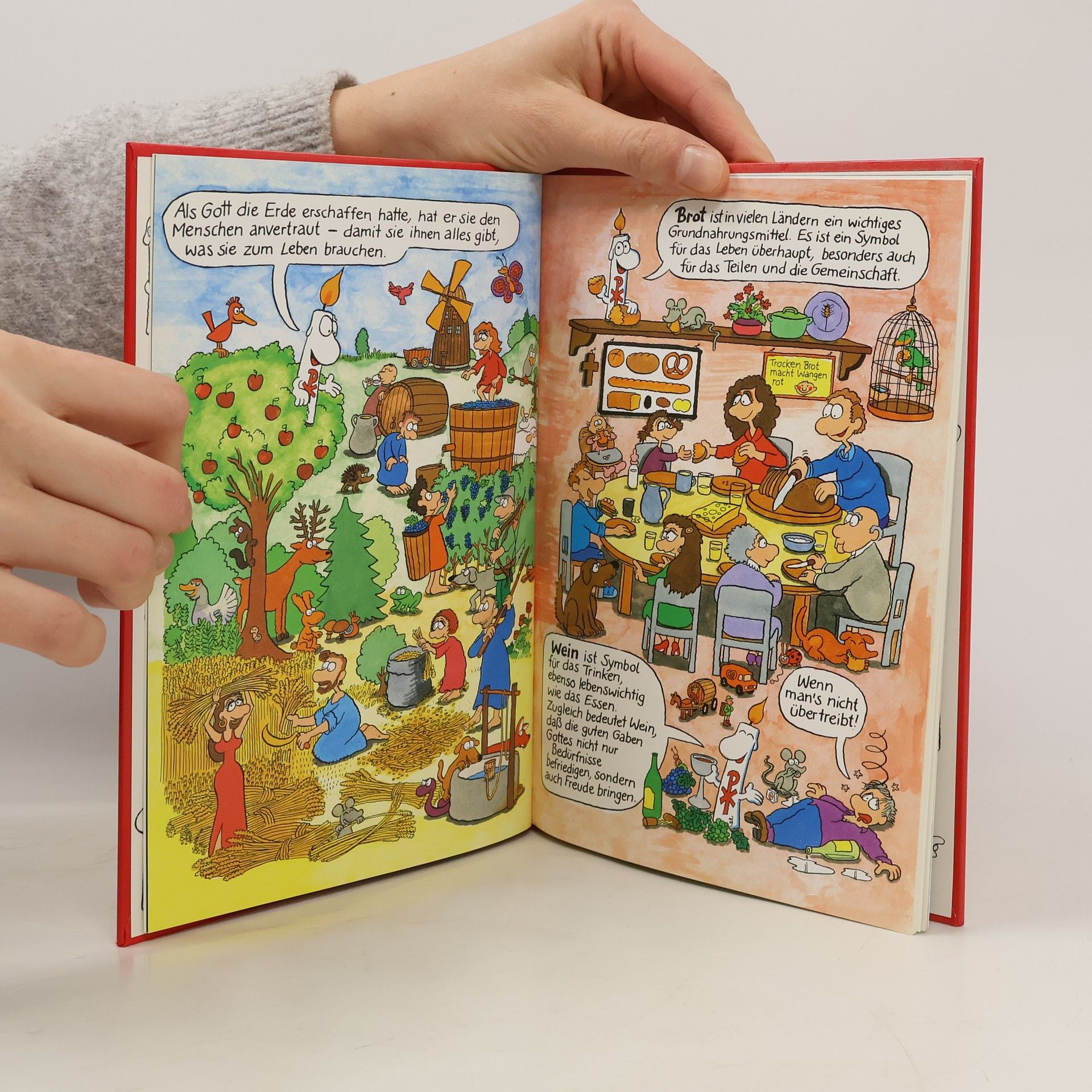 Religion ganz anders: Frisch und pfiffig erklärt Chris, die Kerze, die Kommunion, die Eucharistie und die Bedeutung von Brot und Wein für das Abendmahl. Dabei greift die Knollennasen-Figur zurück auf die biblische Tradition des Gastmahls - vom Paschamahl über die Hochzeit zu Kana bis zum letzten Abendmahl, das Jesus mit seinen Jüngern feierte.