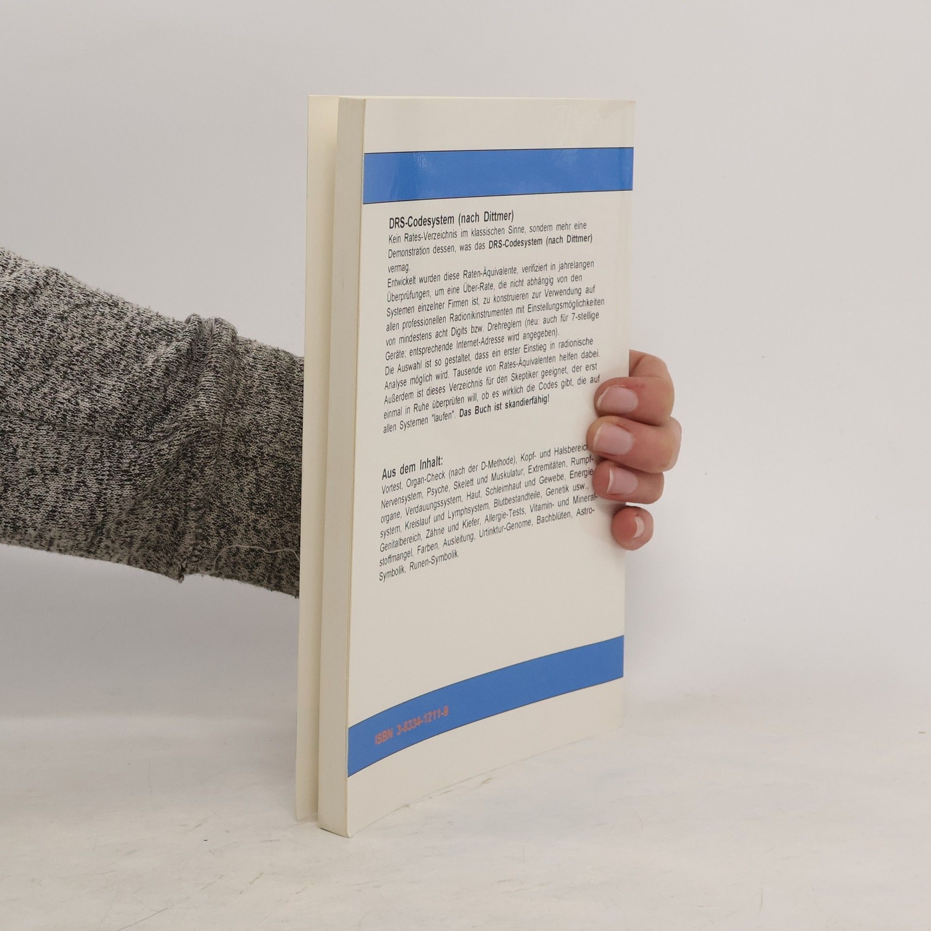 Entwickelt wurden diese Codes (Rates-Äquivalente), um eine Über-Rate, die nicht abhängig von den Systemen einzelner Hersteller-Firmen ist, zu konstruieren zur Verwendung auf professionellen Radionik-Instrumenten. Die Auswahl ist so gestaltet, dass ein erster Einstieg in radionische Analyse möglich wird. Tausende von Rates-Äquivalenten helfen dabei. Aus dem Inhalt: Codes für Vortest, Organ-Check, Kopf- und Halsbereich, Nervensystem, Psyche, Skelett und Muskulatur, Extremitäten, Rumpforgane, Verdauungssystem, Haut, Schleimhaut und Gewebe, Energiesystem, Kreislauf und Lymphsystem, Blutbestandteile, Genetik usw., Genitalbereich, Zähne und Kiefer, Allergie-Tests, Vitamin- und Mineralstoffmangel, Farben, Ausleitung, Urtinktur-Genome, Bachblüten, Astro-Symbolik, Runen-Symbolik.