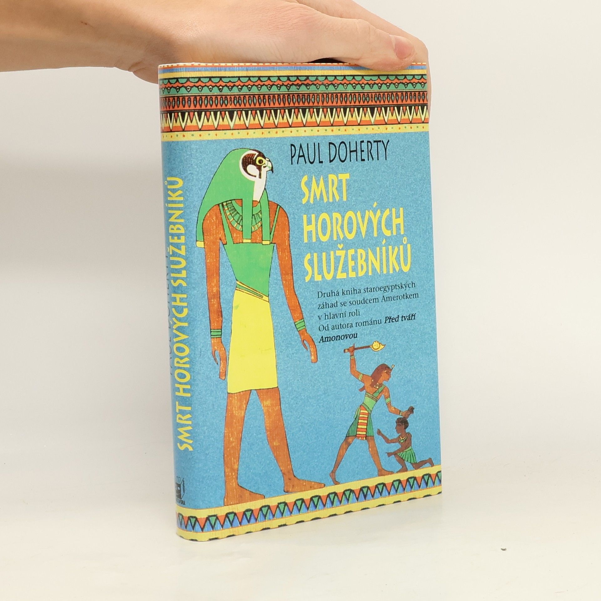 Píše se rok 1479 př. n. l. a ve slavné staroegyptské říši se děje něco nevídaného. Po drtivém válečném vítězství nad sousední Mitánií a razantní čistce, kterou poté provedla mezi dvorskými hodnostáři, usedla na trůn – žena! Ta ohromující opovážlivost přivádí mnohé k zuřivosti. Královna Hatusu si však chce vládu udržet za každou cenu. Co k tomu ale nezbytně potřebuje, je podpora nejmocnějších egyptských chrámů. Jejím plánům však kdosi nepřeje. Brutálním způsobem je zavražděn jeden z kněžích zasvěcených sokolímu božstvu, Horovi. O život přijde starý učenec, po něm je nalezen mrtev další služebník chrámu. A další. A další. Jakoby se je vrah snažil umlčet navždy. V této chvíli se jeví nezbytné povolat muže, jenž by si se záležitostí tak nebezpečnou a hrůznou dokázal poradit. A takovým profesionálem na svém místě je samozřejmě osvědčený, bystrý a odvážný soudce, ctihodný pán Amerotke. Čtenáře opět čeká barvité vylíčení faraonského dvora se všemi jeho přepychovými i bizarními detaily, ovzduší politických intrik, nebezpečí a tajemna.... celý text