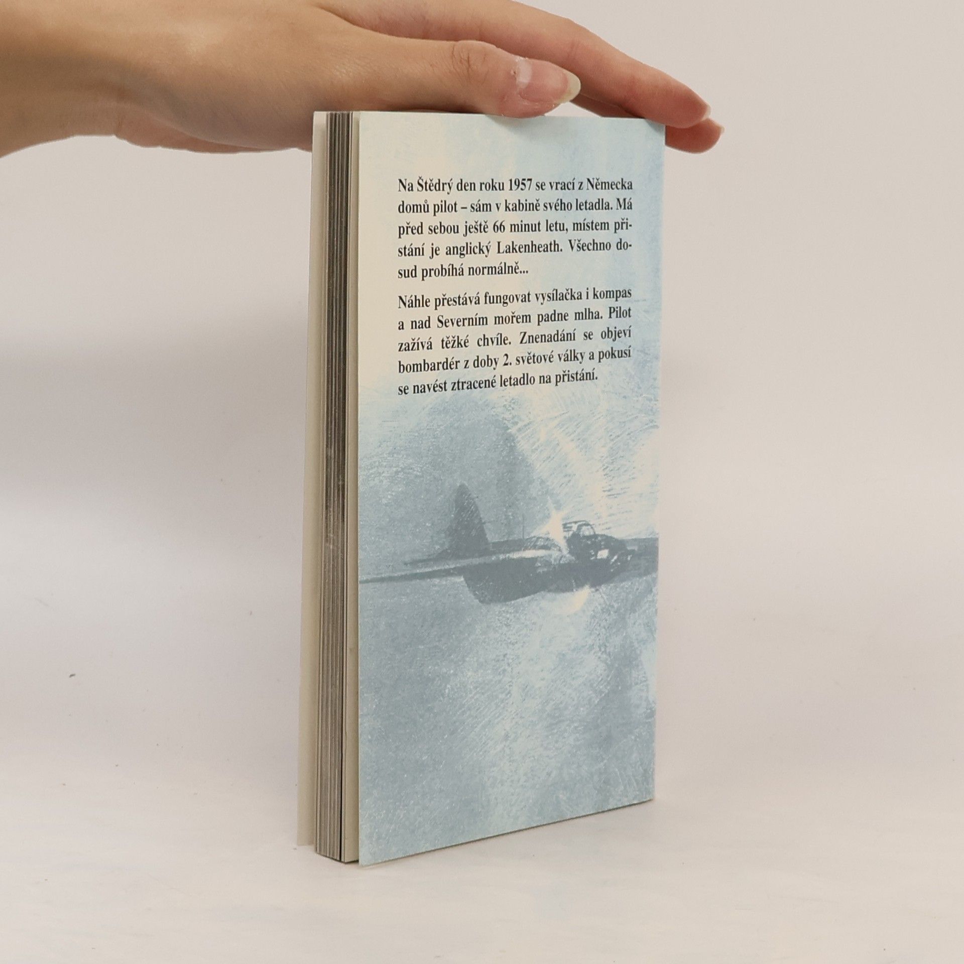 Čtenář této knížečky se ocitá v kůži vojenského pilota RAF, který se se svým malým stíhacím letounem Vampire vrací z Německa na svou základnu v Lakenheathu. Jenomže při průletu na kanálem La Manche nastanou problémy a pilot je nucen kroužit nad mořem a palivo pomalu dochází, v u chvíli se n obloze objeví starý naváděcí letoun z druhé světové války...... celý text