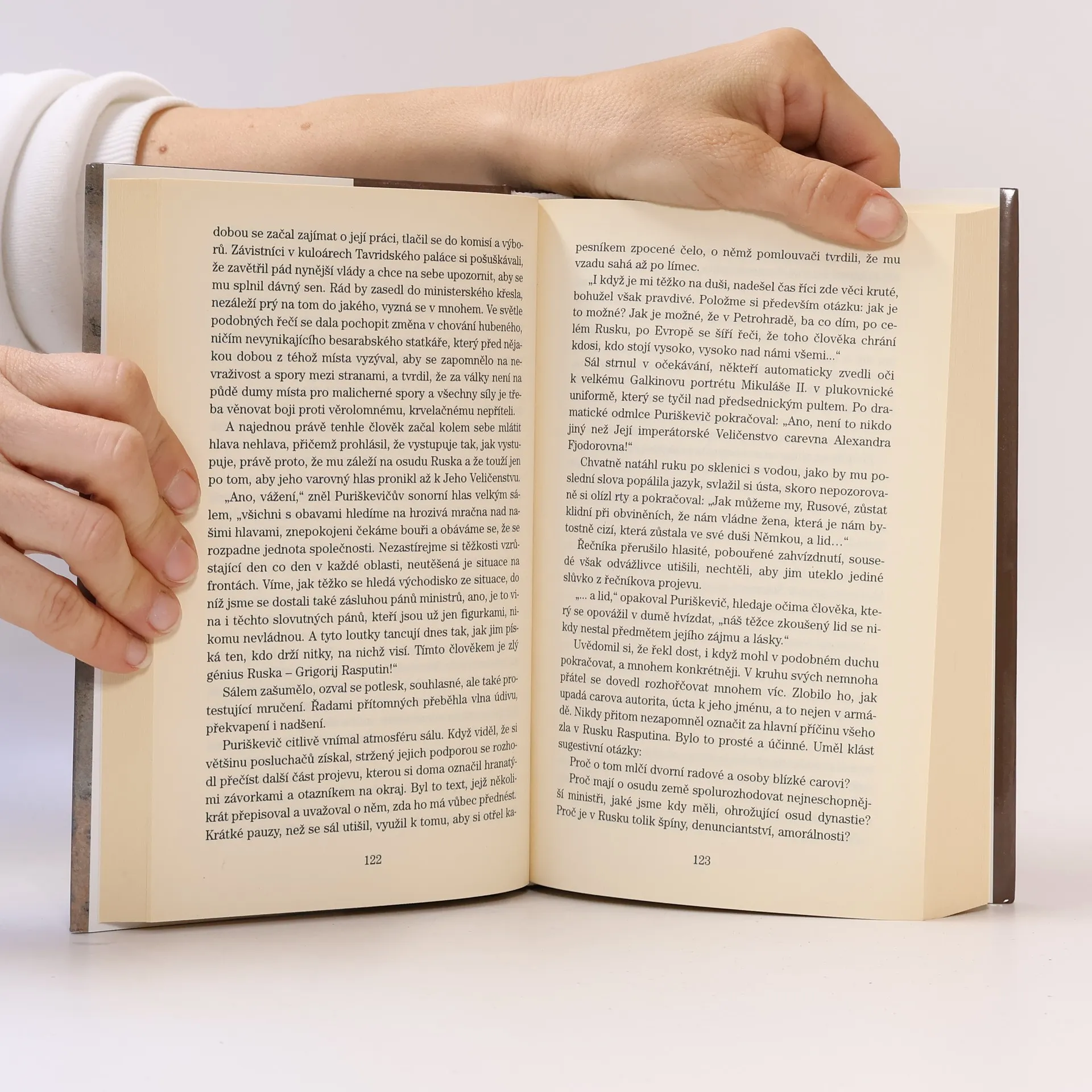 Téměř po dvou desetiletích od nastoupení cara Mikuláše II. na trůn život na carském dvoře jako by odumřel. Už jen pamětníci nostalgicky vzpomínali na dvorní plesy, famózní koncerty, velkolepé svatby a slavnosti pořádané v nádherných sálech Zimního paláce. Prohlubovala se propast mezi panovníkovou rodinou a národy jeho říše. Nad vším vládla pevnou rukou Alexandra Fjodorovna. Zákulisí života na dvoře ruských carů, nevyléčitelná nemoc následníka trůnu Alexeje, závratná kariéra sibiřského mužika a divotvorného mystika Grigorije Jefimoviče Rasputina, jeho vztah k carevně, spiknutí monarchistů, únorová revoluce, odstoupení cara - to jsou historické skutečnosti, na jejichž základě se rozvíjí pestrý a napínavý děj knihy. Petrohradští obdařili Grigorije Rasputina mnoha rozpornými epitety: pro jedny byl fascinující, bohabojný, charismatický, svatý, pro druhé odporný, primitivní, hříšný, perverzní. Jisté je jedno - tento muž mnoha tváří silně ovlivňoval politiku Ruska v období před první světovou válkou i během ní