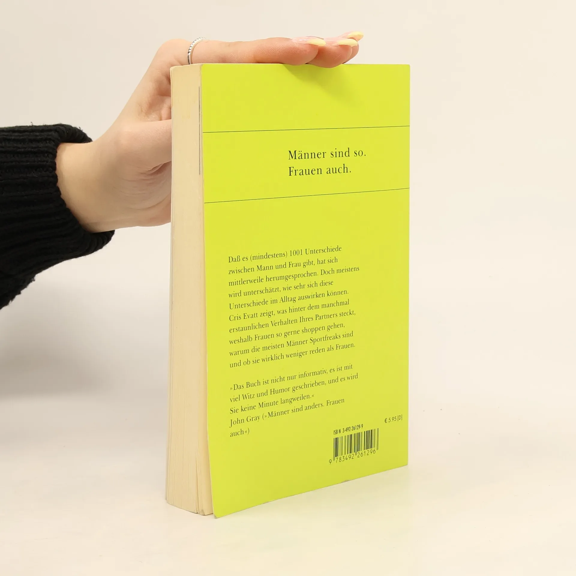 Dass es (mindestens) 1001 Unterschiede zwischen Mann und Frau gibt, hat sich mittlerweile herumgesprochen. Doch meistens wird unterschätzt, wie sehr sich diese Unterschiede im Alltag auswirken können. Cris Evatt zeigt, was hinter dem manchmal erstaunlichen Verhalten Ihres Partners oder Ihrer Partnerin steckt. Endlich erfahren Sie, weshalb Frauen so gerne shoppen gehen, warum die meisten Männer Sportfreaks sind und ob sie wirklich weniger reden als Frauen.