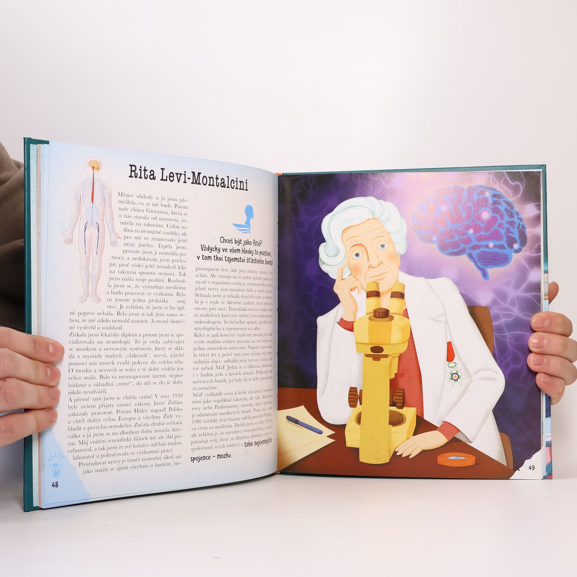 Knížka originálním a poutavým způsobem představuje malým čtenářům významné osobnosti, které se proslavily v oblasti vědy, umění, filozofie nebo politiky. Jejich životní příběhy jsou vyprávěny v první osobě formou autobiografie, která čtenáře snadno vtáhne do vyprávění a přiblíží jim neobyčejné osudy, úspěchy i dětství géniů jako Albert Einstein, Leonardo da Vinci, Rosalind Franklin, Ludwig van Beethoven nebo Kateřina Veliká. Co na této knize zaujme na první pohled, jsou překrásné celostránkové ilustrace.