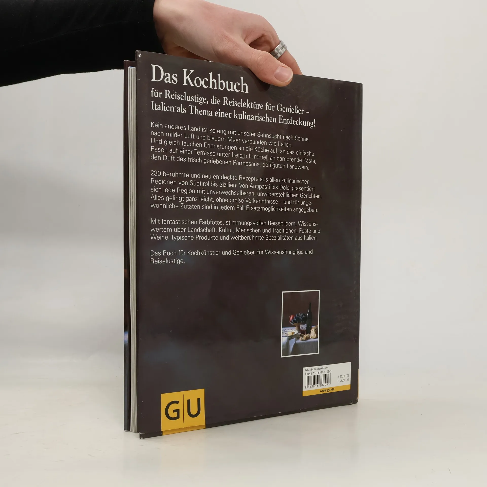 Für viele Liebhaber italienischer Küche gilt sie als das Italienkochbuch schlechthin: Die echte italienische Küche. Veröffentlicht 1990 und mehrfach ausgezeichnet, wurde der Longseller zu einem der erfolgreichsten Kochbücher der letzten Jahre. Mehr als eine Million Exemplare gingen bisher über den Ladentisch. Nun endlich ist der Klassiker mit den schönsten traditionellen Regionalrezepten auch wieder im GU Programm erhältlich - mit neuen Texten zu den Weinen der Regionen und Weinempfehlungen zu einzelnen Gerichten.