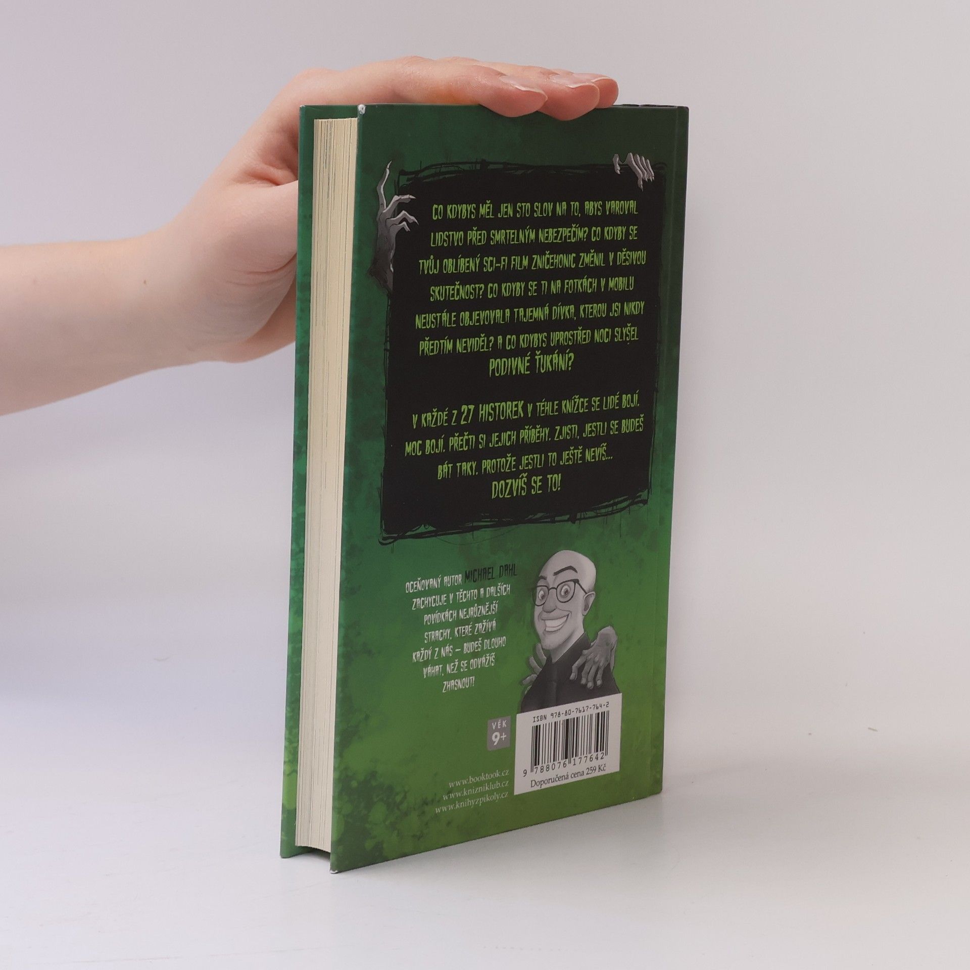 Co kdybys měl jen sto slov na to, abys varoval lidstvo před smrtelným nebezpečím? Co kdyby se tvůj oblíbený sci-fi film zničehonic změnil v děsivou skutečnost? Co kdyby se ti na fotkách v mobilu neustále objevovala tajemná dívka, kterou jsi nikdy předtím neviděl? A co kdybys uprostřed noci slyšel podivné ťukání? V každé z 27 historek v téhle knížce se lidé bojí. Moc bojí. Přečti si jejich příběhy. Zjisti, jestli se budeš bát taky. Protože jestli to ještě nevíš… dozvíš se to! Pro nebojácné čtenáře od 9 let.