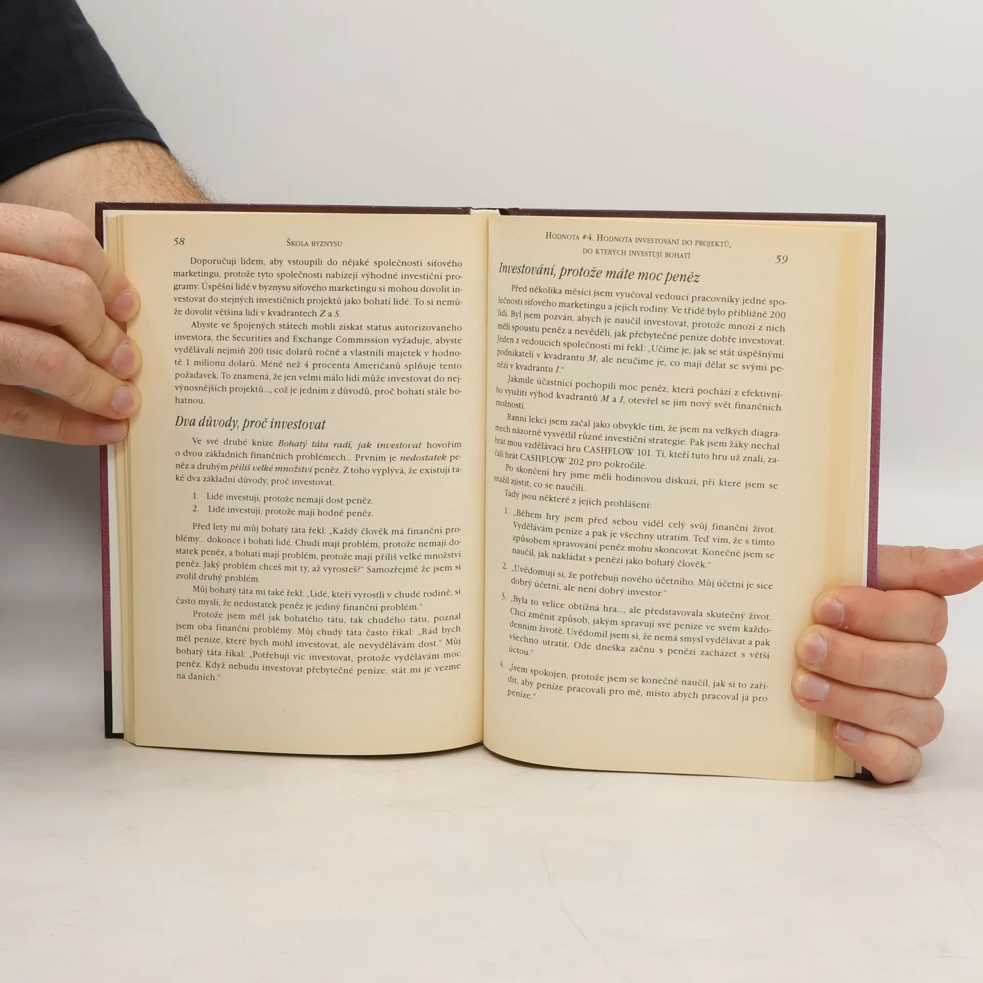 Robert Kiyosaki je světově uznávaný učitel v oboru financí a jeho kniha je označována za "výchozí bod pro každého, kdo chce získat kontrolu nad svou finanční budoucností". Autor přisuzuje svůj úspěch síťovému marketingu. Ačkoli nepropaguje žádnou konkrétní organizaci síťového marketingu, uvědomuje si cenu příležitostí, jež tyto organizace nabízejí, a zdůrazňuje jejich hodnotu v této knize. Síťový marketing nabízí vypracovaný obchodní systém každému, kdo chce získat kontrolu nad svou finanční budoucností. (pro lidi, kteří rádi pomáhají lidem : osm skrytých hodnot síťového marketingu, spojených s vyděláváním peněz)