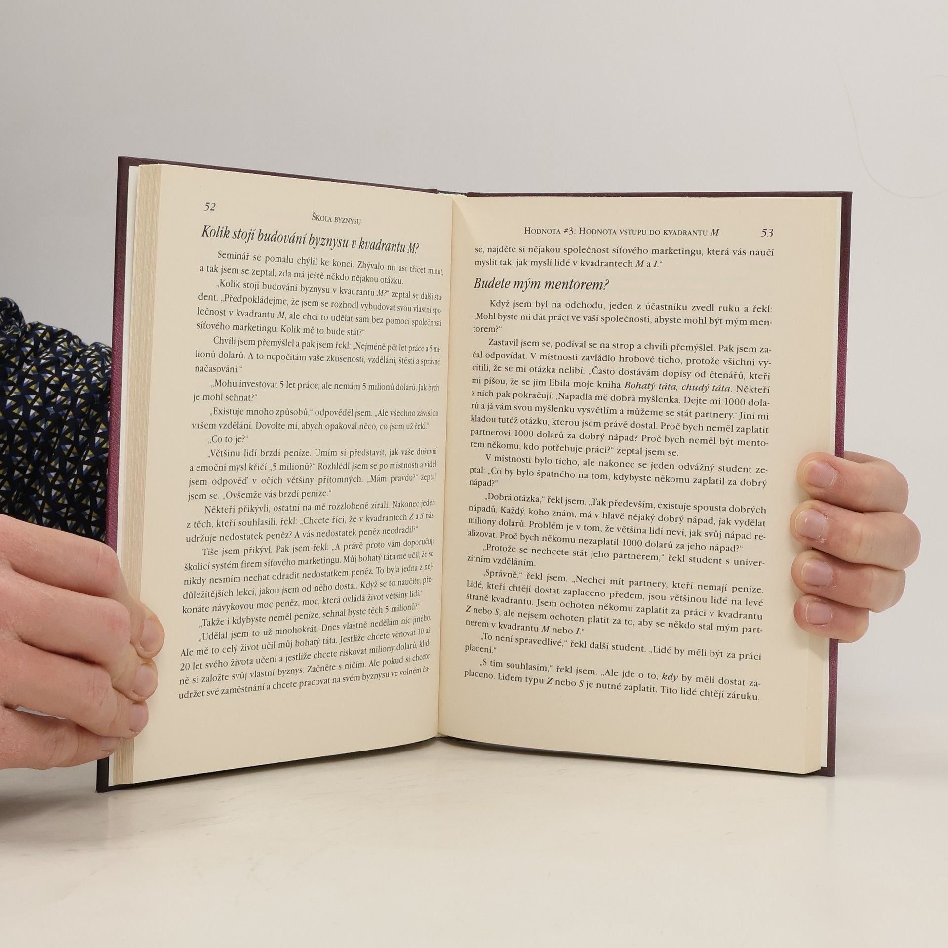 Robert Kiyosaki je světově uznávaný učitel v oboru financí a jeho kniha je označována za "výchozí bod pro každého, kdo chce získat kontrolu nad svou finanční budoucností". Autor přisuzuje svůj úspěch síťovému marketingu. Ačkoli nepropaguje žádnou konkrétní organizaci síťového marketingu, uvědomuje si cenu příležitostí, jež tyto organizace nabízejí, a zdůrazňuje jejich hodnotu v této knize. Síťový marketing nabízí vypracovaný obchodní systém každému, kdo chce získat kontrolu nad svou finanční budoucností. (pro lidi, kteří rádi pomáhají lidem : osm skrytých hodnot síťového marketingu, spojených s vyděláváním peněz)