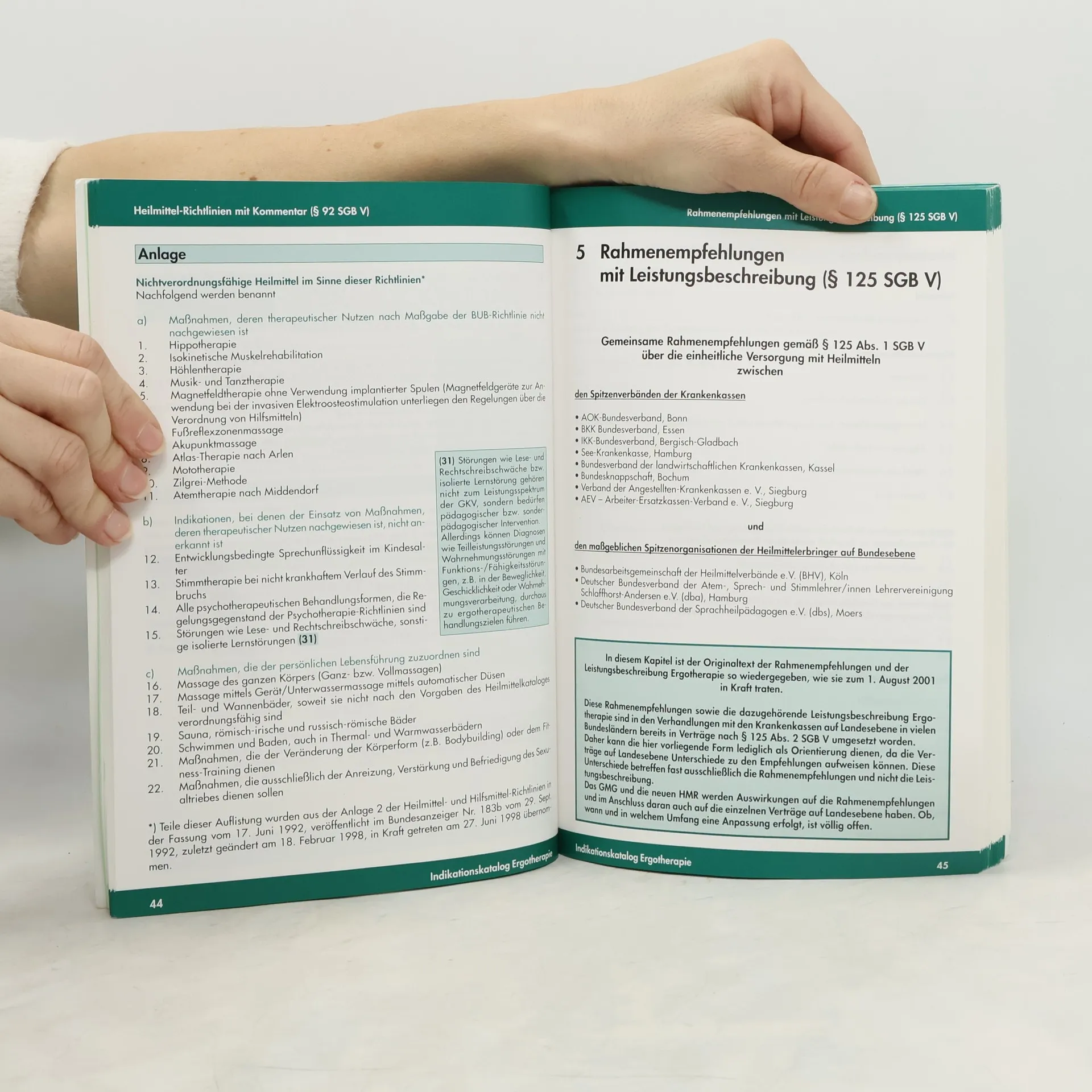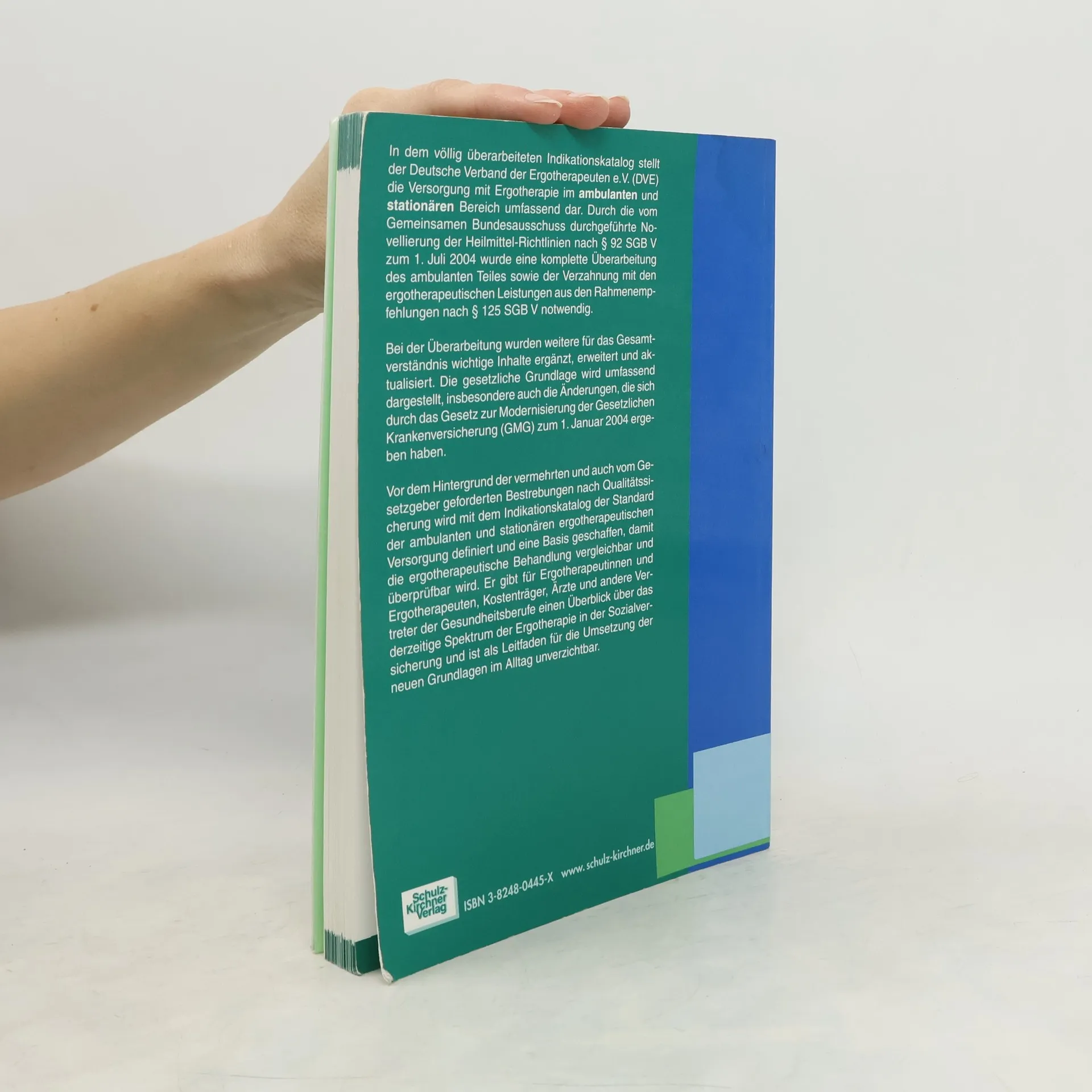 Mit diesem überarbeiteten Indikationskatalog hat der Deutsche Verband der Ergotherapeuten e. V. (DVE) die Versorgung mit Ergotherapie im ambulanten und stationären Bereich umfassend dargestellt. Die Novellierung der Heilmittel-Richtlinien nach § 92 SGB V zum 1. Juli 2004 erforderte eine komplette Überarbeitung des ambulanten Teils sowie der Verzahnung mit den ergotherapeutischen Leistungen aus den Rahmenempfehlungen nach § 125 SGB V. Bei dieser Überarbeitung wurden wichtige Inhalte ergänzt, erweitert und aktualisiert. Die gesetzlichen Grundlagen, insbesondere die Änderungen durch das Gesetz zur Modernisierung der Gesetzlichen Krankenversicherung (GMG) zum 1. Januar 2004, werden umfassend dargestellt. Angesichts der vom Gesetzgeber geforderten Qualitätssicherung definiert der Indikationskatalog den Standard der ergotherapeutischen Versorgung und schafft eine Basis für vergleichbare und überprüfbare Behandlungen. Er bietet Ergotherapeutinnen und Ergotherapeuten, Kostenträgern, Ärzten und anderen Gesundheitsberufen einen Überblick über das aktuelle Spektrum der Ergotherapie in der Sozialversicherung und dient als unverzichtbarer Leitfaden für die Umsetzung der neuen Grundlagen im Alltag.