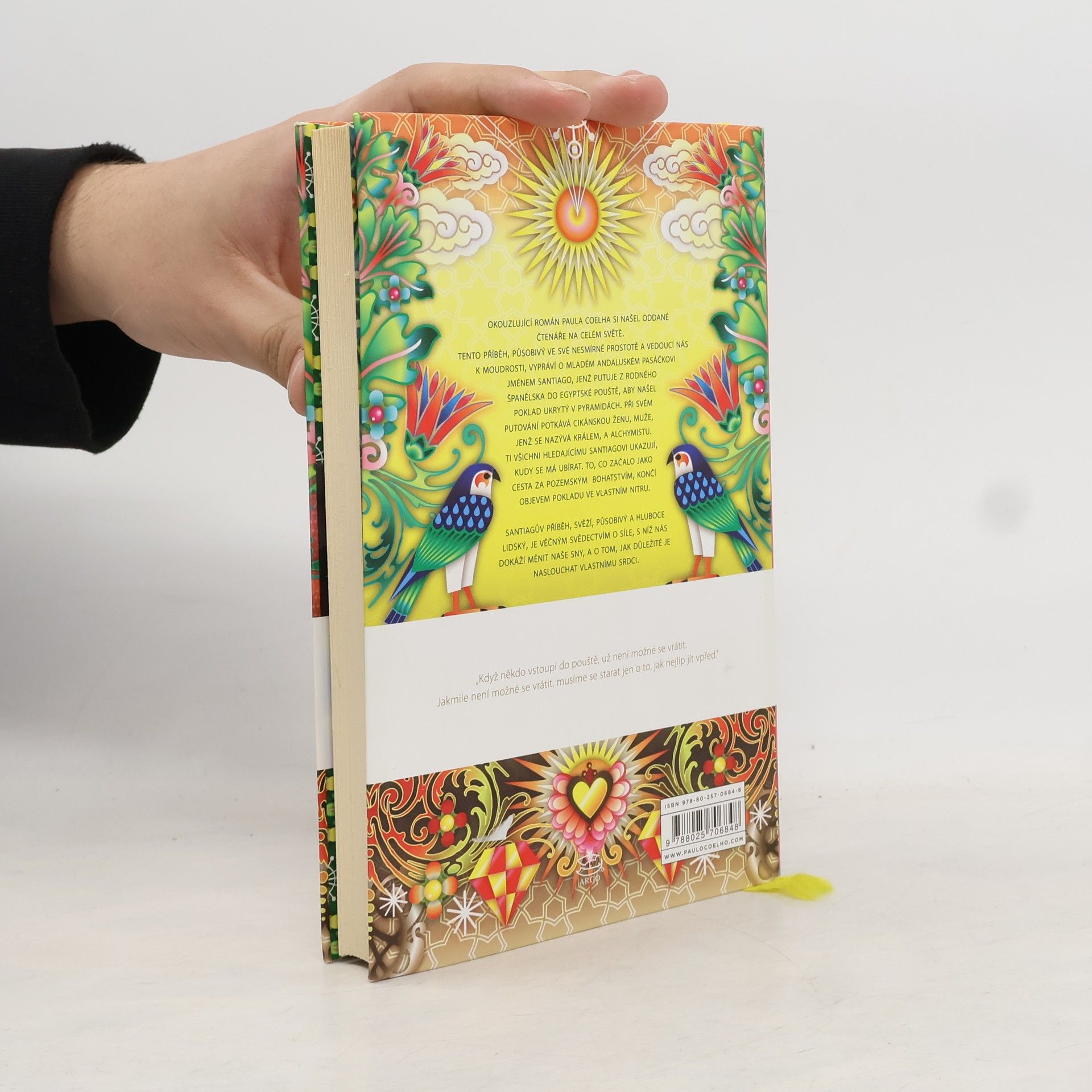 Román Alchymista – největší brazilský bestseller všech dob – byl dosud přeložen do 34 jazyků a prodalo se ho na 10 milionů výtisků. Takřka pohádkové vyprávění o cestě španělského pastýře za zakopaným pokladem, vycházející z příběhu o splněném snu ze sbírky Tisíc a jedna noc, je zároveň výzvou k naplnění vlastního osudu i poznáním posvátnosti světa, v němž žijeme. Na cestě za oním dvojím pokladem, plné zkoušek a důležitých setkání, je třeba dbát všech znamení a s neustálou trpělivostí a odvahou (jako alchymista sledující proměnu obyčejného kovu ve zlato) přetvořit samu svou osobnost.