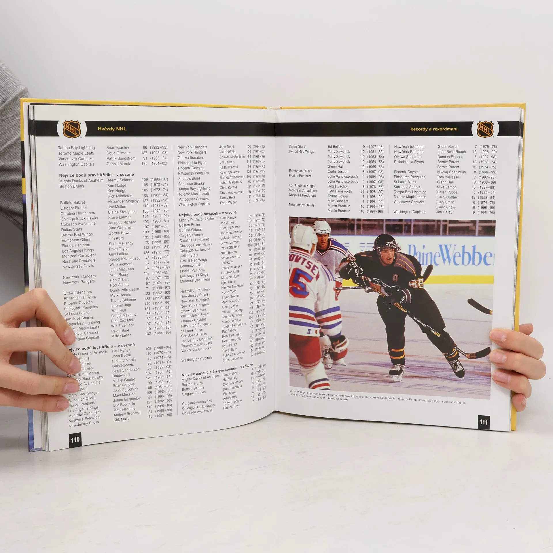 Krátké portréty čtyřiceti nejvýraznějších osobností historie NHL včetně pohledů na největší hvězdy českého a slovenského hokeje (Malone, Vezina, Howe, Hull, Orr, Dryden, Esposito, Lemieux a další) budou doplněny přehlednou bilancí jednotlivých sezon uvedených hráčů, stejně jako portréty třiceti nejvýraznějších postav současnosti (Gretzky, Hull, Roy, Selanne, Jágr, Hašek a další). Kniha rovněž přiblíží překonávání “hranic nesmrtelnosti“ – 1000 bodů a 500 branek v kariéře, 100 bodů a 50 branek v sezoně. Další kapitoly představí kompletní individuální rekordy historie NHL a vítěze všech trofejí a sestavy All Star týmů jednotlivých sezon. Autoři se v knize pokusí hledat i odpovědět na otázku, kdo by mohl být nejlepším hokejistou historie NHL.