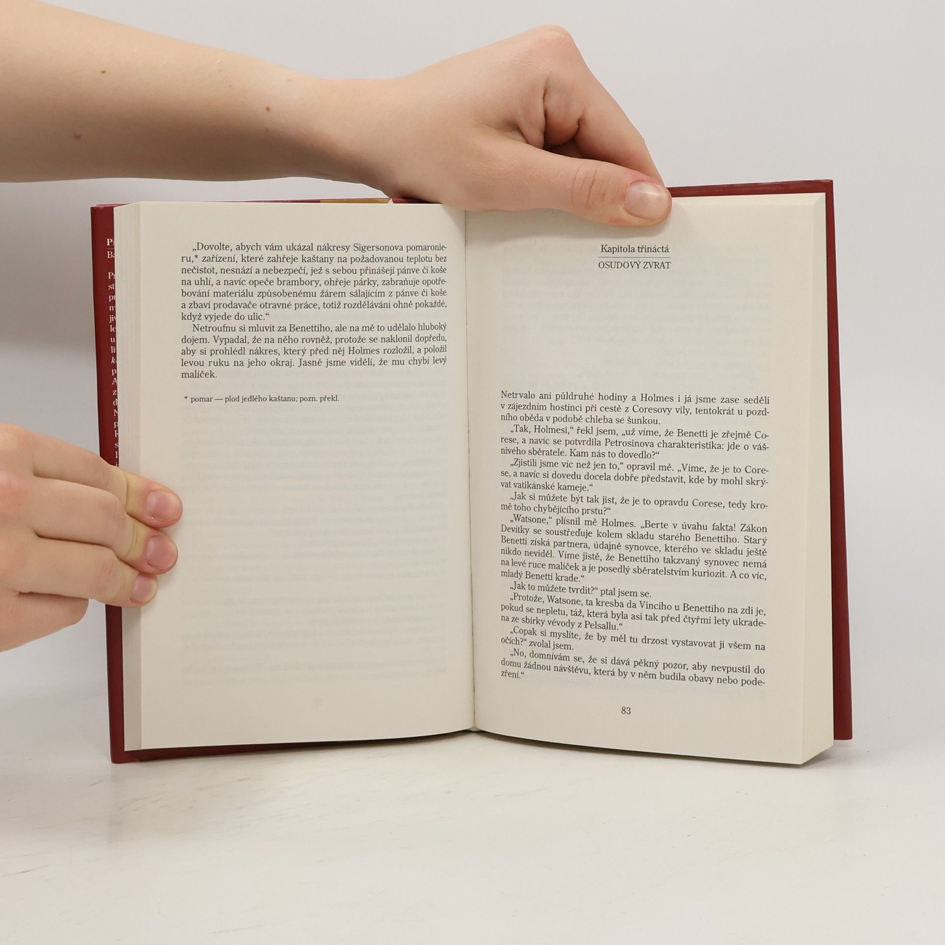 Pro Sherlocka Holmese, milovníka hudby, představuje Tosca jméno protivníka z případu vatikánských kamejí, který se mu kdysi nepodařilo vyřešit. Jak souvisí lstivý italský kardinál s událostmi v londýnských ulicích? Barrie Roberts, zkušený znalec reálií a Watsonovy literární pozůstalosti, nám opět nabízí zasvěcený pohled na „starou dobrou Anglii“, v níž velký detektiv působil. Jeho ctitelé jsou zvyklí na rozmanité tragédie, které se objevují v nových příbězích. Některé nápady byly bláznivé, jiné se držely původní dikce. Roberts nám již představil následky střetu s indiánskou hrdostí a exotikou Indie. Bez ohledu na inspiraci autorů se můžeme spolehnout, že i ty nejfantastičtější výjevy mají své hluboce lidské zdůvodnění. Co však pohledávají na tomto jevišti kramáři? Přesto právě za neštěstím těchto drobných obchodníků Holmes odhaluje dalekosáhlé spiknutí. Ukazuje se, že po nich kdosi vymáhá výpalné a neštítí se ani vražd. Holmes spojuje síly s newyorkským policistou, aby rozpletli síť zločinných intrik tajemné Devítky, což ho postaví proti organizaci, známé později jako mafie.