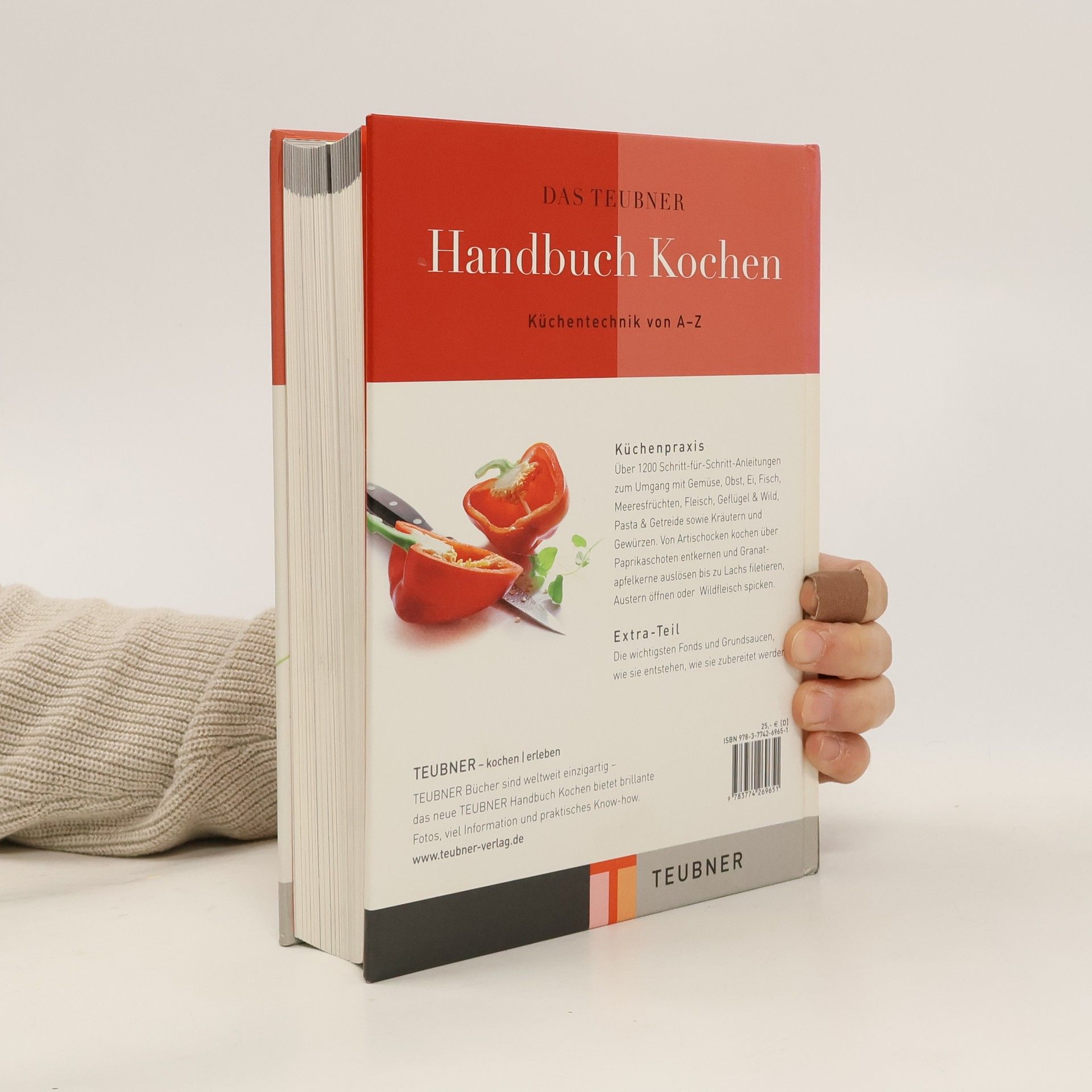 Der TEUBNER-Titel bietet Basis-Küchentechniken für sämtliche Produktgruppen in einem umfangreichen Band im praktisch-handlichen Format, d. h. über 1200 Schritt-für-Schritt-Anleitungen zum Umgang mit Gemüse, Obst, Ei, Fisch, Meeresfrüchten, Fleisch, Geflügel & Wild, Pasta & Getreide sowie Kräutern und Gewürzen. Extra: ein ganzes Kapitel über die wichtigsten Fonds und Grundsaucen, wie sie entstehen, wie sie zubereitet werden. Im Gegensatz zur großen „TEUBNER Küchenpraxis“ mit ca. 4500 Stepfotos und vielen Rezepten und Verwendungsbeispielen sowie Warenkunde, konzentriert sich das TEUBNER Handbuch Kochen auf die Beschreibung und bildliche Darstellung von ca. 350 Basis-Kochtechniken in etwa 1200 Stepfotos. Das TEUBNER Handbuch Kochen ist das perfekte Nachschlagewerk für beispielsweise das fachgerechte Schneiden von Zwiebeln oder Vorbereiten von Fleisch und Fisch.