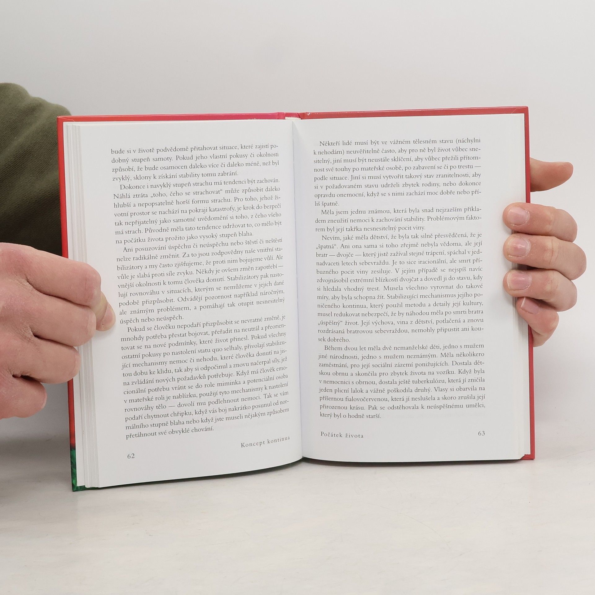 Autorka ve své světově proslulé knize odhaluje, proč jsou lidé žijící na Západě tak nespokojení a často nešťastní. Po několika expedicích mezi jihoamerické indiány rozpoznala, že tyto pocity mohou pramenit z neuspokojených potřeb miminek a malých dětí, které se na Západě snažíme vychovávat podle všemožných teorií, jen ne podle vlastní intuice a evolucí vytvořených jednoduchých pravidel a očekávání. V knize, kterou napsala již v r. 1975, velmi jasně a přesvědčivě vysvětluje, jak je potřeba zacházet s našimi nejmenšími, aby z nich vyrostly spokojené a samostatné děti a posléze dospělí lidé, kteří si nepotřebují „léčit“ své deprivace z dětství všemi možnými způsoby, počínaje drogovou závislostí a konče nezdravými partnerskými vztahy, a jsou schopni vést plnohodnotný život, jenž nebude naplněn věčnou nespokojeností a hledáním „něčeho“, co nalézt nelze. Našemu vlastnímu životu tak dává úplně nový rozměr a pomáhá lidem najít jednoduchou, a přitom málo předvídatelnou odpověď na často kladenou otázku – proč nejsme šťastní.