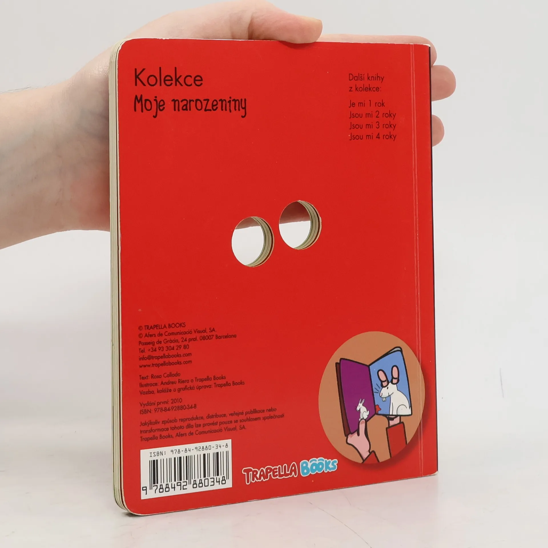 Knížka je určená pro děti, které právě oslavily 2. narozeniny. Čtyřdílná série Moje narozeniny je navržena pro oslavu narozenin dětí od jednoho do čtyř let věku. Ke každému věku se vztahuje vždy jedna barevná kniha. Tato unikátní leporela jsou nejen hračkou, ale také pomůckou, která děti seznamuje s číslovkou představující jejich věk hravým a zábavným způsobem. Názorně naučí děti ukázat, kolik jim je let. Leporela obsahují barevné ilustrace a jsou opatřeny "magickými očky" - otvory - které děti překvapí i zaujmou. Ilustrace v knihách jsou vždy uzpůsobeny věku, pro který jsou určeny.