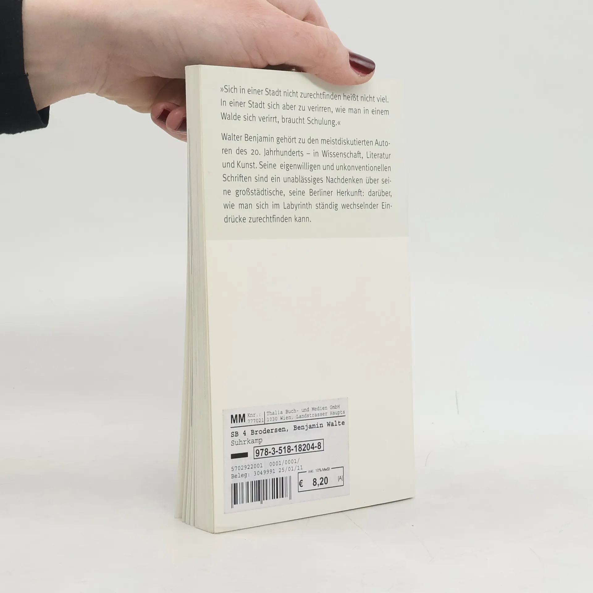 Walter Benjamin gehört zu den meistdiskutierten Autoren des 20. Jahrhunderts – in Wissenschaft, Literatur und Kunst. Seine eigenwilligen und unkonventionellen Schriften sind ein unablässiges Nachdenken über seine großstädtische, seine Berliner Herkunft: darüber, wie man sich im Labyrinth ständig wechselnder Eindrücke zurechtfinden kann.