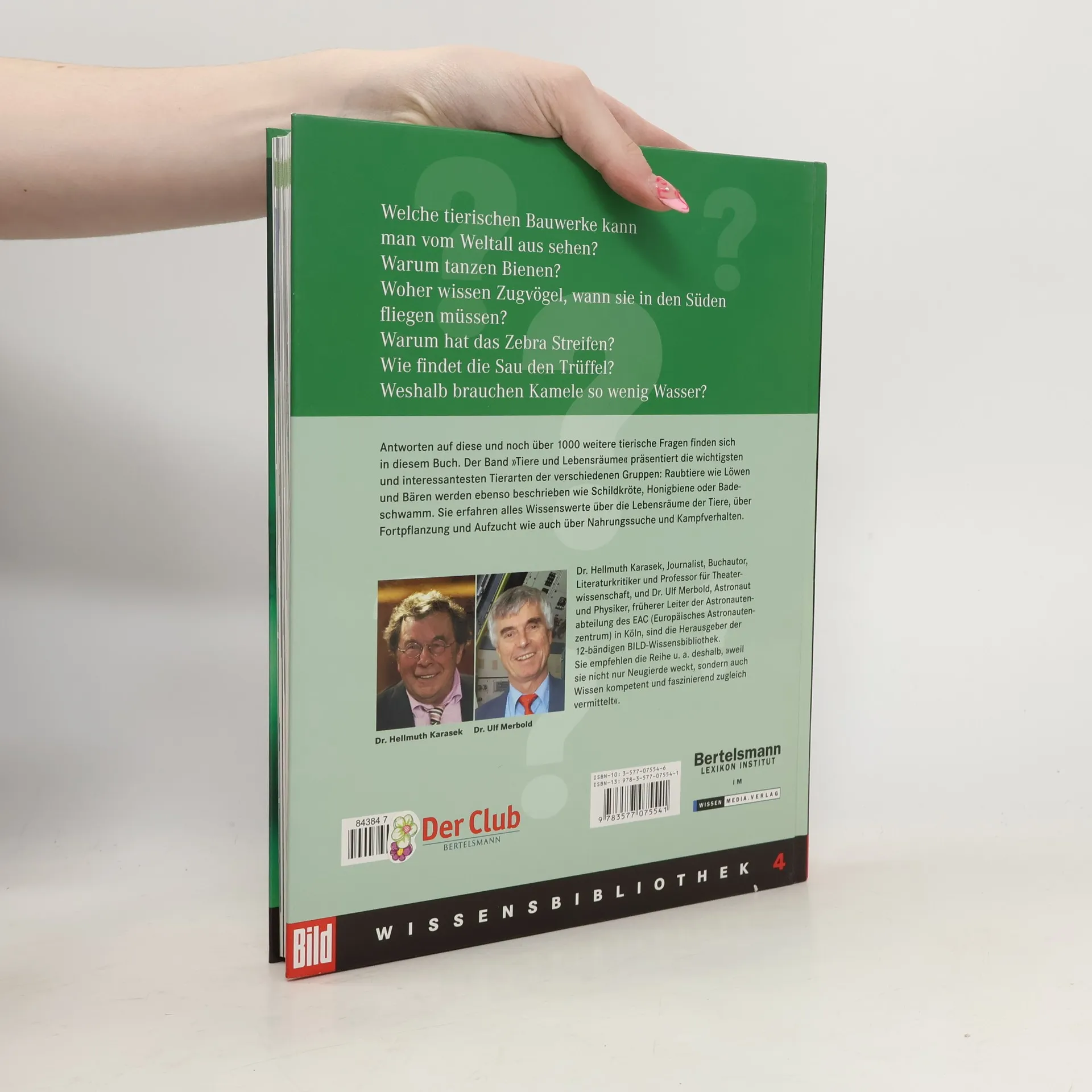 Welche tierischen Bauwerke kann man vom Weltall aus sehen?§Warum tanzen Bienen?§Woher wissen Zugvögel, wann sie in den Süden fliegen müssen?§Warum hat das Zebra Streifen?§Wie findet die Sau den Trüffel?§Weshalb brauchen Kamele so wenig Wasser?§§Antworten auf diese und noch über 1000 weitere tierische Fragen finden sich in diesem Buch.§Sie erfahren alles Wissenswerte über die Lebensräume der Tiere, über Fortpflanzung und Aufzucht wie auch über Nahrungssuche und Kampfverhalten.