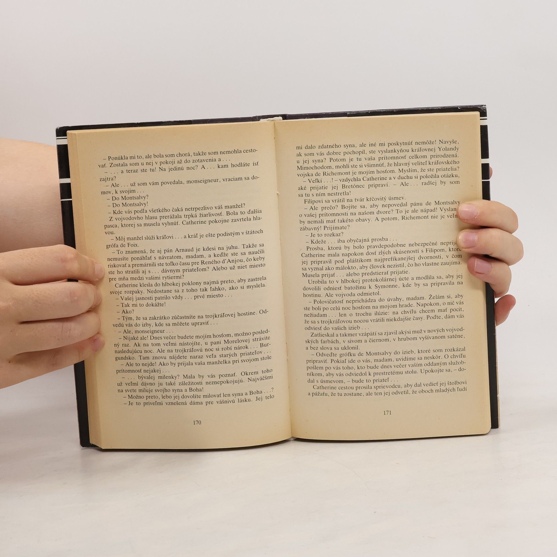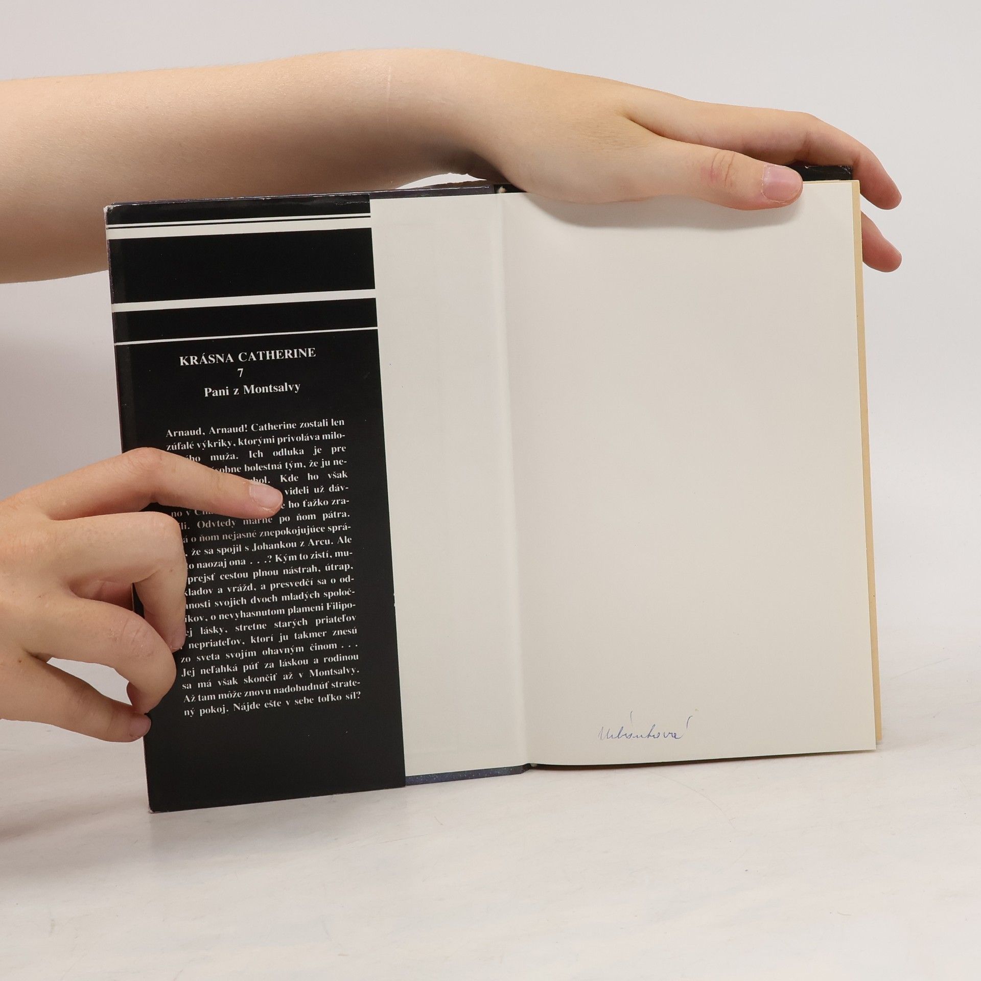Pani z Montsalvy Arnaud! Arnaud! CAtherine zostali len zúfalé výkriky, ktorými privoláva milovaného muža. Ich odluka je pre ňu dvojnásobne bolestná tým, že ju nespravodlivo zavrhol. Kde ho však nájsť? Posledný raz sa videli už dávno v Chateauvillain, kde ho ťažko zranili. Odvtedy márne po ňom pátra. Má o ňom nejasné znepokojujúce správy, že sa spojil s Johankou z Arcu. Ale je to naozaj ona?... Kým to zistí, musí prejsť cestou plnou nástrah, útrap, úkladov a vrážd, a presvedčí sa o oddanosti svojich dvoch mladých spoločníkov, o nevyhasnutom plameni Filipovej lásky, stretne starých priateľov i nepriateľov, ktorí ju takmer znesú zo sveta svojim ohavným činom... Jej neľahká púť za láskou a rodinou sa má však skončiť až v Montsalvy. Až tam môže znovu nadobudnúť stratený pokoj. Nájde ešte v sebe toľko síl?