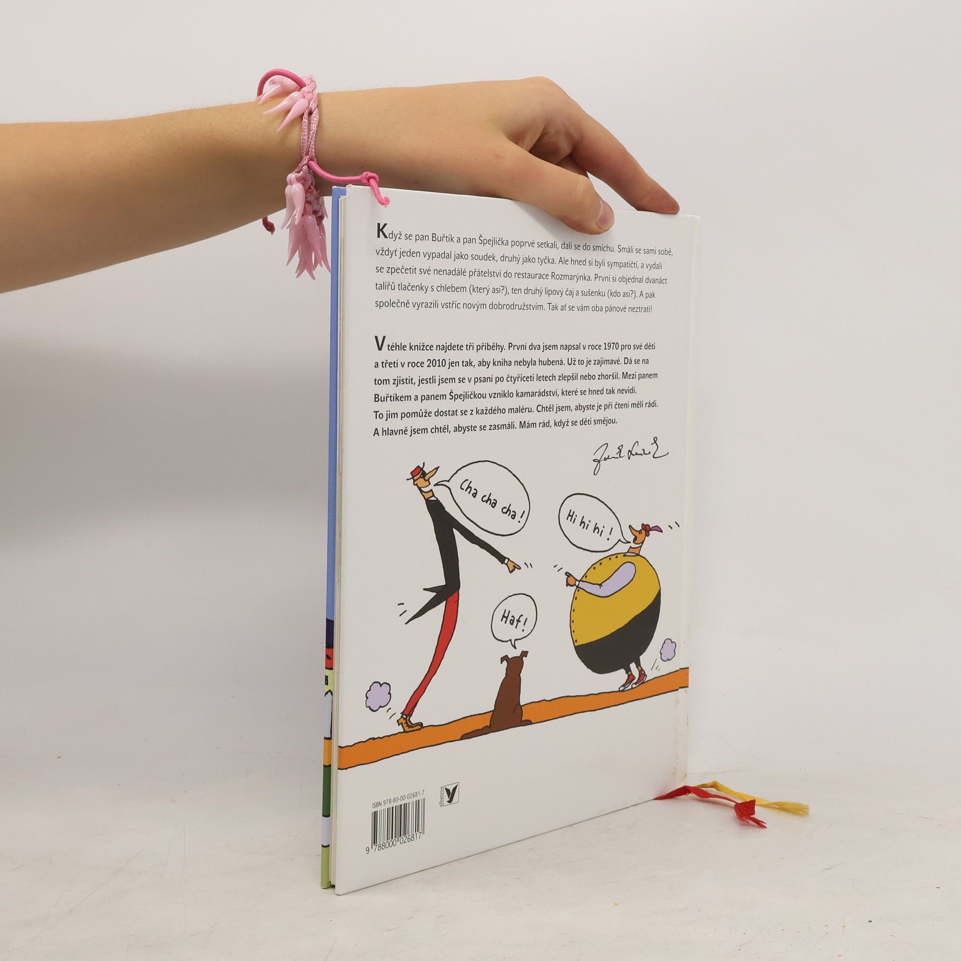 Nová kniha Zdeňka Svěráka, vypráví o nevšedním přátelství dvou kamarádů, zpečetěném tlačenkou a lipovým čajem. Tři neuvěřitelné příběhy pana Buřtíka a pana Špejličky doprovodil svými ilustracemi Jiří Votruba. Vznikla tak pestrá a nápaditá knížka nejen pro děti. První dva příběhy napsal Zdeněk Svěrák v 70. letech pro své děti. Vyšly v roce 1971 a 1972 v Albatrosu jako samostatné sešity a čtenáři si je velmi oblíbili. Třetí příběh - Lekárna U bílé myšky - dopsal Zdeněk Svěrák v tomto roce. „Mezi panem Buřtíkem a panem Špejličkou vzniklo kamarádství, které se hned tak nevidí. To jim pomůže dostat se z každého maléru. Když se pan Buřtík a pan Špejlička poprvé setkali, dali se do smíchu. Smáli se sami sobě, vždyť jeden vypadal jako soudek, druhý jako tyčka. Ale hned si byli sympatičtí, a vydali se zpečetit své nenadálé přátelství do restaurace Rozmarýnka. První si objednal dvanáct talířů tlačenky s chlebem (který asi?), ten druhý lipový čaj a sušenku (kdo asi?). A pak společně vyrazili vstříc novým dobrodružstvím. Tak ať se vám oba pánové neztratí!