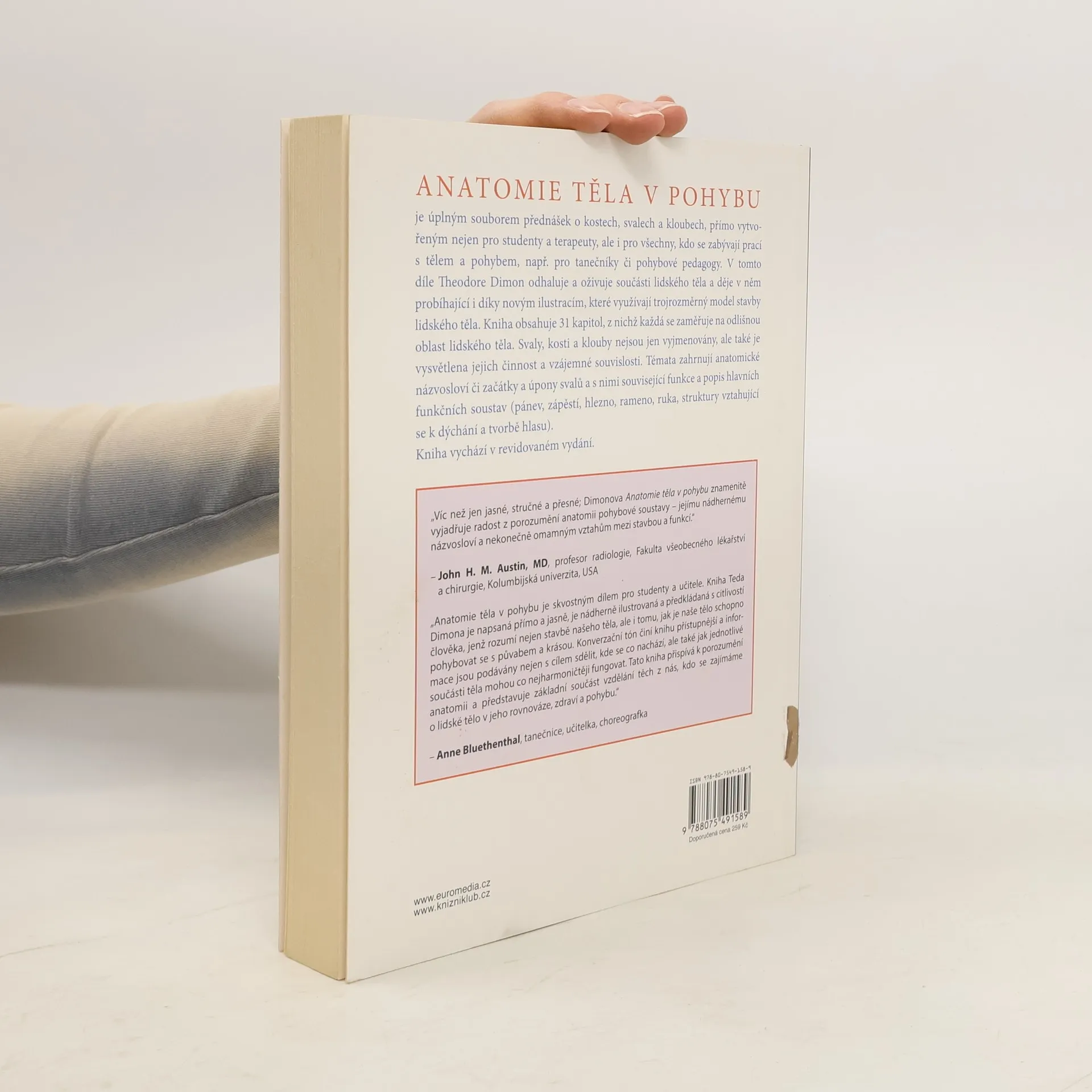 Tento ucelený soubor přednášek se zaměřením na kosti, svaly a klouby lidského těla, a to nejen z hlediska jejich morfologie a struktury, ale především z hlediska jejich funkcí a vzájemného funkčního propojení, seznamuje čtenáře se základním anatomickým názvoslovím. Každá kapitola je doplněna přehlednými ilustracemi souvisejícími s daným tématem. Kniha je určena především studentům, jejichž studijní obory předpokládají znalosti fungování pohybového systému lidského těla, dále pak profesionálům v oblasti tance, zpěvu či herectví, pedagogům působícím v těchto oborech a zrovna tak odborníkům, zejména terapeutům zabývajícím se léčebnou prací s tělem.
