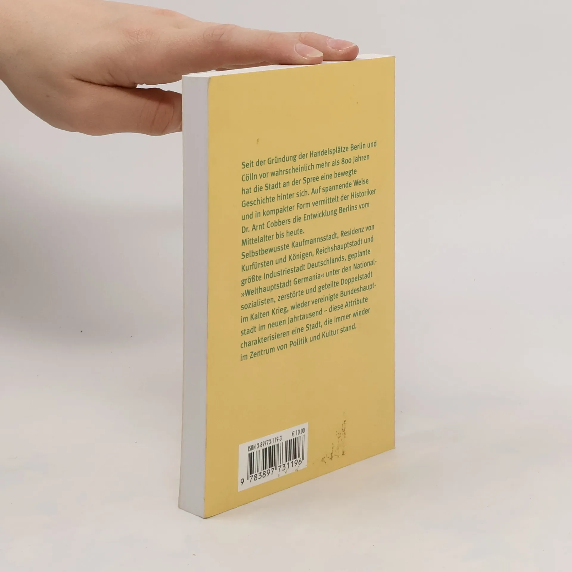 Von der Siedlung an einer Spree-Furt über die mittelalterliche Handelsstadt, die Residenz der Kurfürsten und Könige, die Reichshauptstadt und wachsende Millionenmetropole, das kulturelle Zentrum in der Weimarer Republik, die Machtzentrale der Nationalsozialisten, die durch die Mauer geteilte Frontstadt des Kalten Krieges zur weltoffenen und blühenden Metropole der Gegenwart: Die Geschichte Berlins ist bewegend und einzigartig. Dr. Arnt Cobbers führt mit sicherem Blick für die großen historischen Zusammenhänge wie auch für markante Details durch rund 800 Jahre Berliner Geschichte. In zehn übersichtlich gestalteten Kapiteln zeichnet der renommierte Historiker das spannungsreiche Bild einer Stadt, die trotz des häufigen Wechsels von Blüte und Niedergang, Glanz und Zerstörung immer auch ein Zentrum europäischer Politik und Kultur war. Begleitet von hervorragendem, zum großen Teil farbigem Bildmaterial, bietet die „Kleine Berlin-Geschichte“ einen kompakten Überblick über die Entwicklung einer der interessantesten Metropolen der Welt.