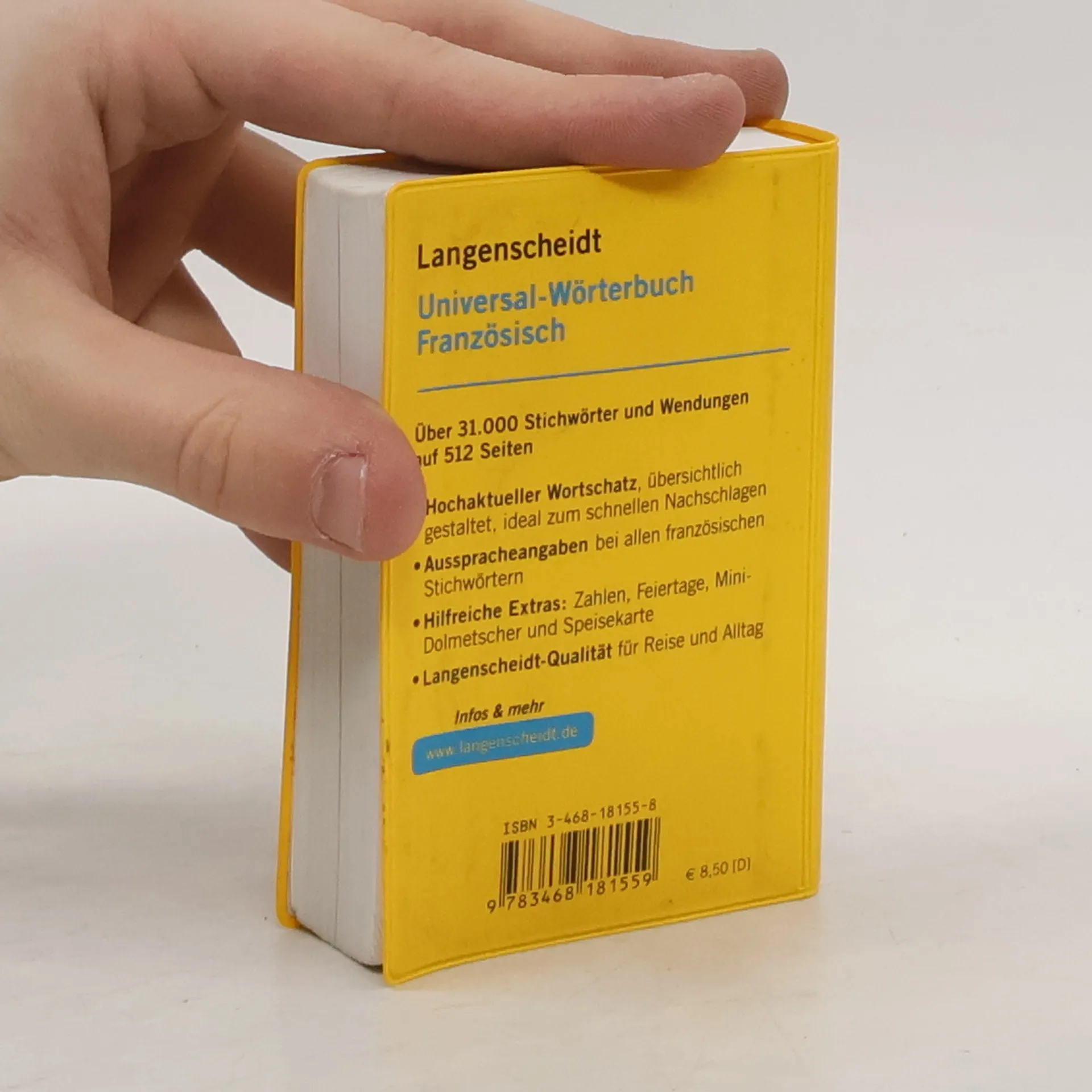 Das universelle Wörterbuch mit aktuellem Wortschatz im besonders praktischen Format. Rund 31.000 Stichwörter und Wendungen alle Haupteinträge in Blau für die schnelle Orientierung hilfreiche Extras im Anhang: Feiertage, Mini-Dolmetscher zu wichtigen Sprechsituationen auf der Reise, französische Speisekarte u. a. zum schnellen Nachschlagen auf Reisen und für den fremdsprachlichen Anfangsunterricht