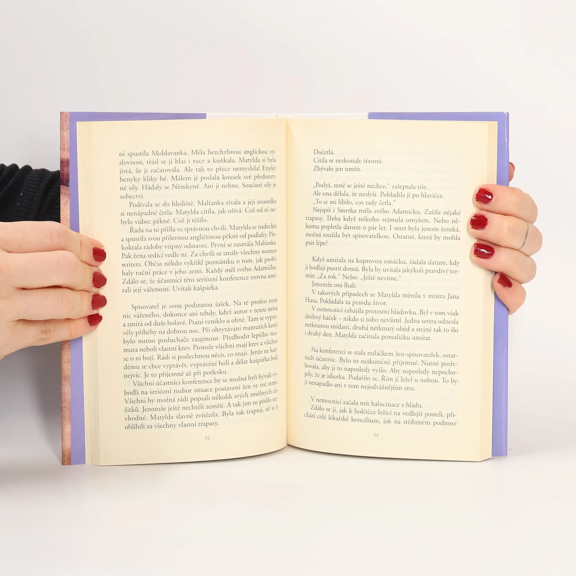 Spisovatelka Matylda je pozvána do Říma na setkání autorek z celé Evropy. Je v tom však jistý háček - Matylda se za spisovatelku nepovažuje, alespoň ne v onom velkolepém smyslu slova. Nejenom proto se rozhodne ve městě měst zemřít. Pokud možno velkolepě? Mohla by napsat celou knihu o psaní. To by byla teprve ostuda! Ale jelikož se před chvílí rozhodla zemřít, existovala jistá šance, že tu ostudu ustojí. Že jí to čtenáři prominou. Že jim jí bude líto. V každém čtenáři dřímá spisovatel, každý touží napsat knihu. Leckterý už začal. Všichni potají myslí na svůj pomník, ale přizná to jen blb spisovatel, člověk od přírody vybavený neomaleností, neskromností a neopatrností. Někdo by možná řekl pravdomluvností, ale nebylo by to přesné.