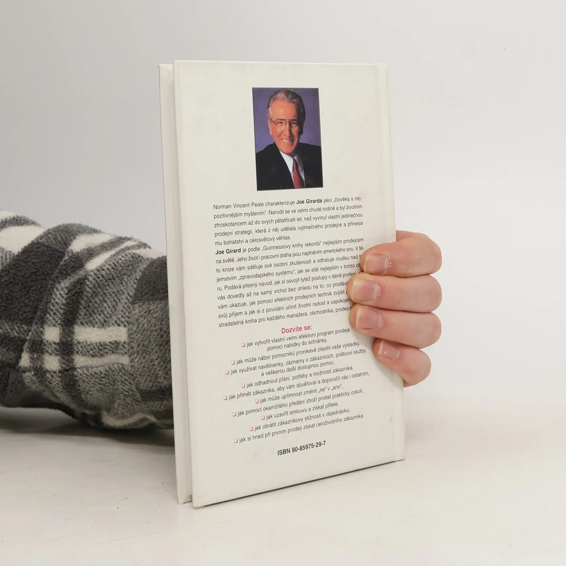 N.V.Peale charakterizuje J.Girarda ako človeka s najpozitívnejším myslením. Narodil sa vo veľmi chudobnej rodine a bol životným stroskotancom až do svojich 35 rokov, než vyvinul vlastnú jedinečnú predajnú stratégiu, ktorá z neho urobila výnimočného predajcu a priniesla mu bohatstvo a celosvetový ohlas. J.Girard je podľa Guinessovej knihy rekordov najlepším predajcom na svete. Jeho život a pracovná dráha sú naplnením Amerického sna. Autor vám ukazuje, ako pomocou efektných predajných techník zvýšiť a znásobiť svoj príjem, a ako si z povolania urobiť životnú radosť a uspokojenie. Dozviete sa okrem iného, ako uzavrieť zmluvu a získať priateľov, ako obrátiť zákazníkove sťažnosti na objednávku, ako si ihneď pri prvom predaji získať celoživotného zákazníka.