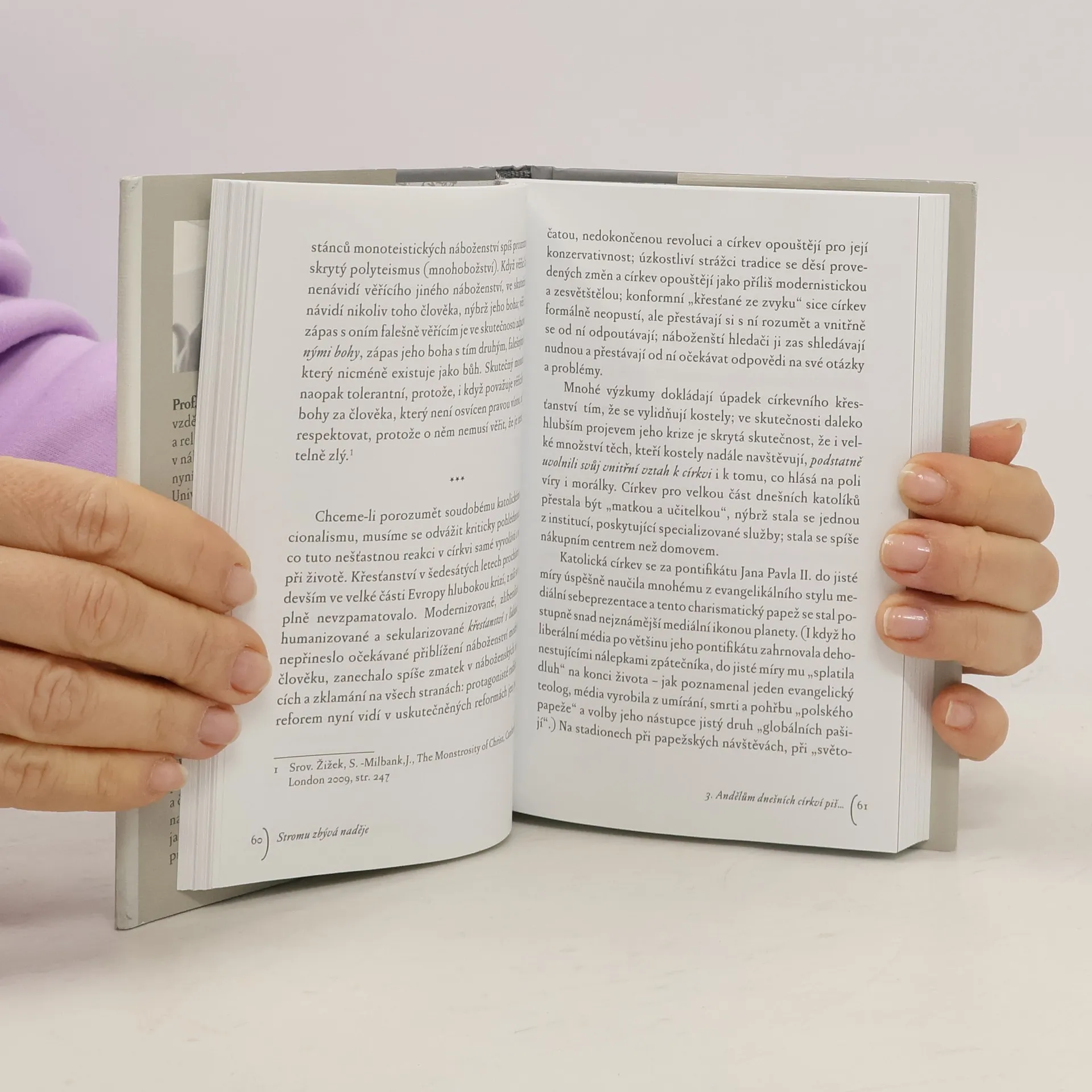 Tento soubor esejů spojuje velké téma: naděje. Autor učí úctě ke každé podobě lidské naděje, protože v ní může být skryto víc, než jen cíl, k němuž se vědomě upíná - v hloubi naděje tuší žízeň po absolutnu. Naděje je zvláště aktuální téma v čase krize, kterou autor pojímá šířeji než jen krizi ekonomickou. Každá krize je však šance: právě krize v životech jednotlivců i společností, v nichž se mnohé naděje ukazují být pouhými iluzemi, umožňuje naději pročistit se a uzrát, "zamířit na hlubinu" - krize je tak kolébkou naděje. Autor polemizuje s jednostranností ateismu i povrchní náboženskosti, hlásí se k teologii, která se podobně jako Bible podobá spíše literatuře a umění vůbec originalitou stále nových reinterpretací a vnitřní bohatostí, než uzavřeným "bezrozporným" systémům pozitivistické vědy či novověkých "vědeckých ideologií".