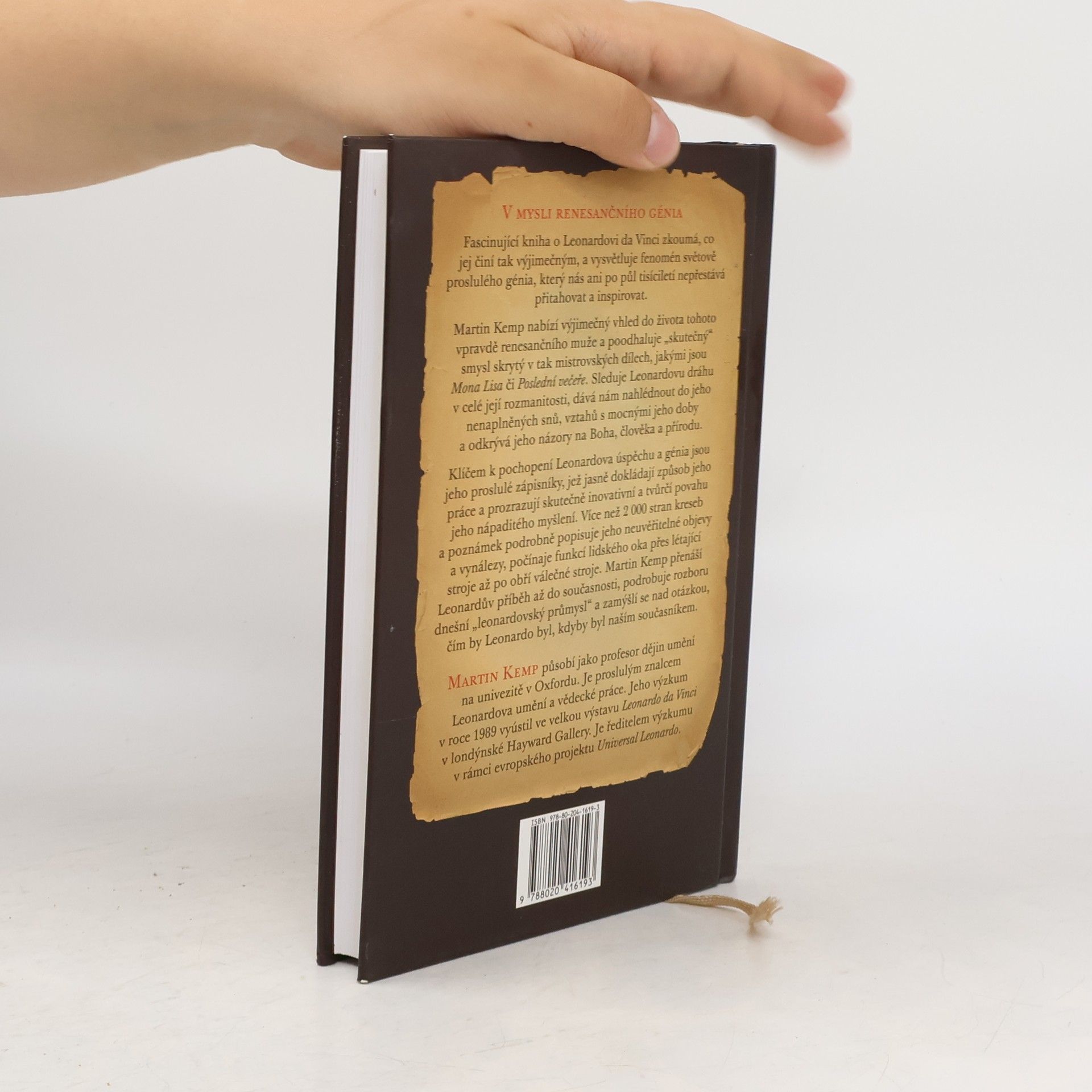 Leonardo da Vinci nás ani po půl tisíciletí nepřestává přitahovat a inspirovat. Výjimečný vhled do života tohoto vpravdě renesančního muže poodhaluje „skutečný“ smysl skrytý v tak mistrovských dílech, jakými jsou Mona Lisa či Poslední večeře. Sleduje Leonardovu dráhu v celé její rozmanitosti, dává nám nahlédnout do jeho nenaplněných snů, vztahů s mocnými jeho doby a odkrývá jeho názory na Boha, člověka a přírodu. Martin Kemp přenáší Leonardův příběh až do současnosti, podrobuje rozboru dnešní „leonardovský průmysl“ a zamýšlí se nad otázkou, čím by Leonardo byl, kdyby byl naším současníkem.