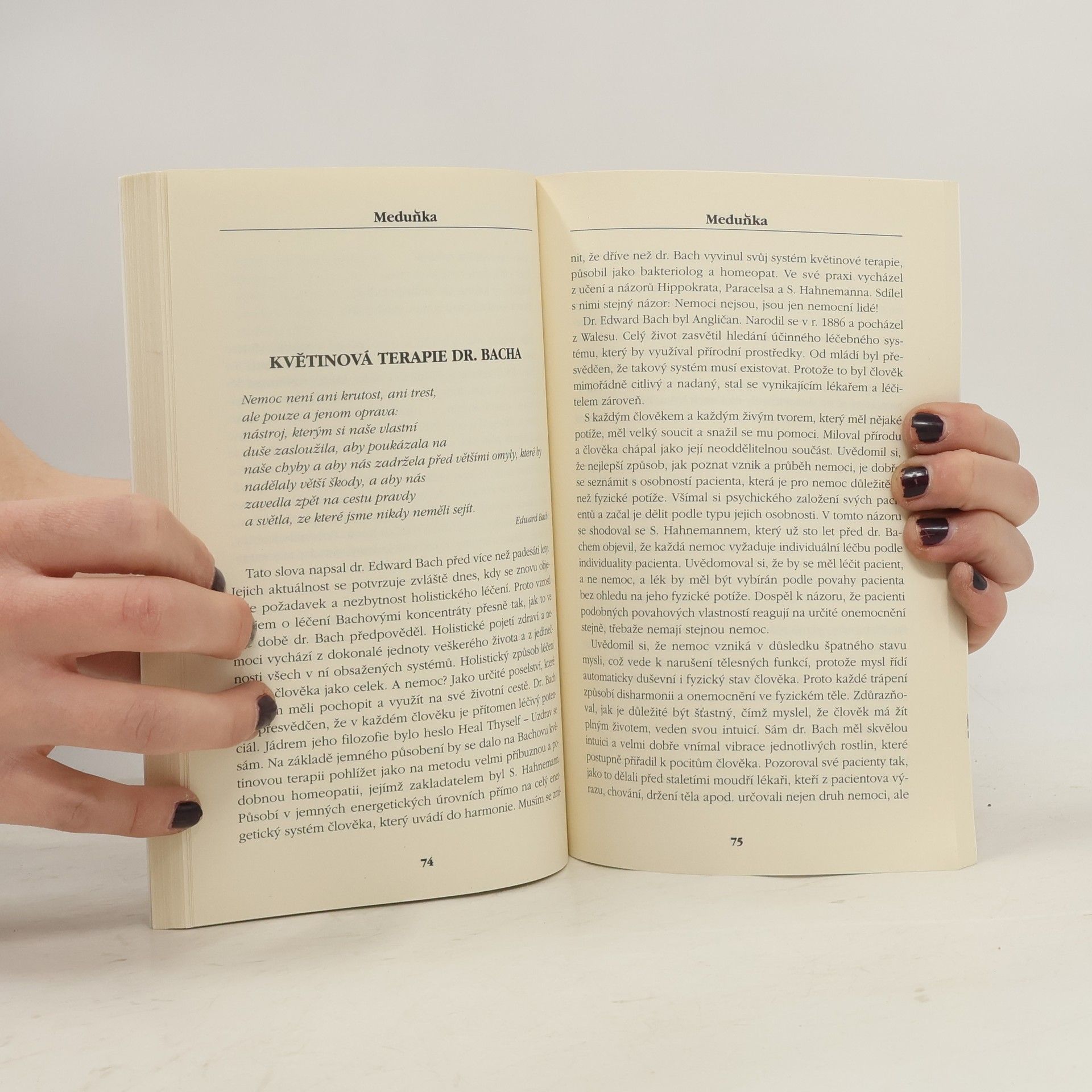 Stručný souhrn nejrůznějších oborů alternativního léčení (mineralogie, fototerapie, astrologie ad.), s nimiž se můžeme setkat. Autorka, zkušená psycholožka a léčitelka, nabízí čtenářům k výběru širokou škálu možností, jak dosáhnout harmonie těla a duše – tedy zdraví.