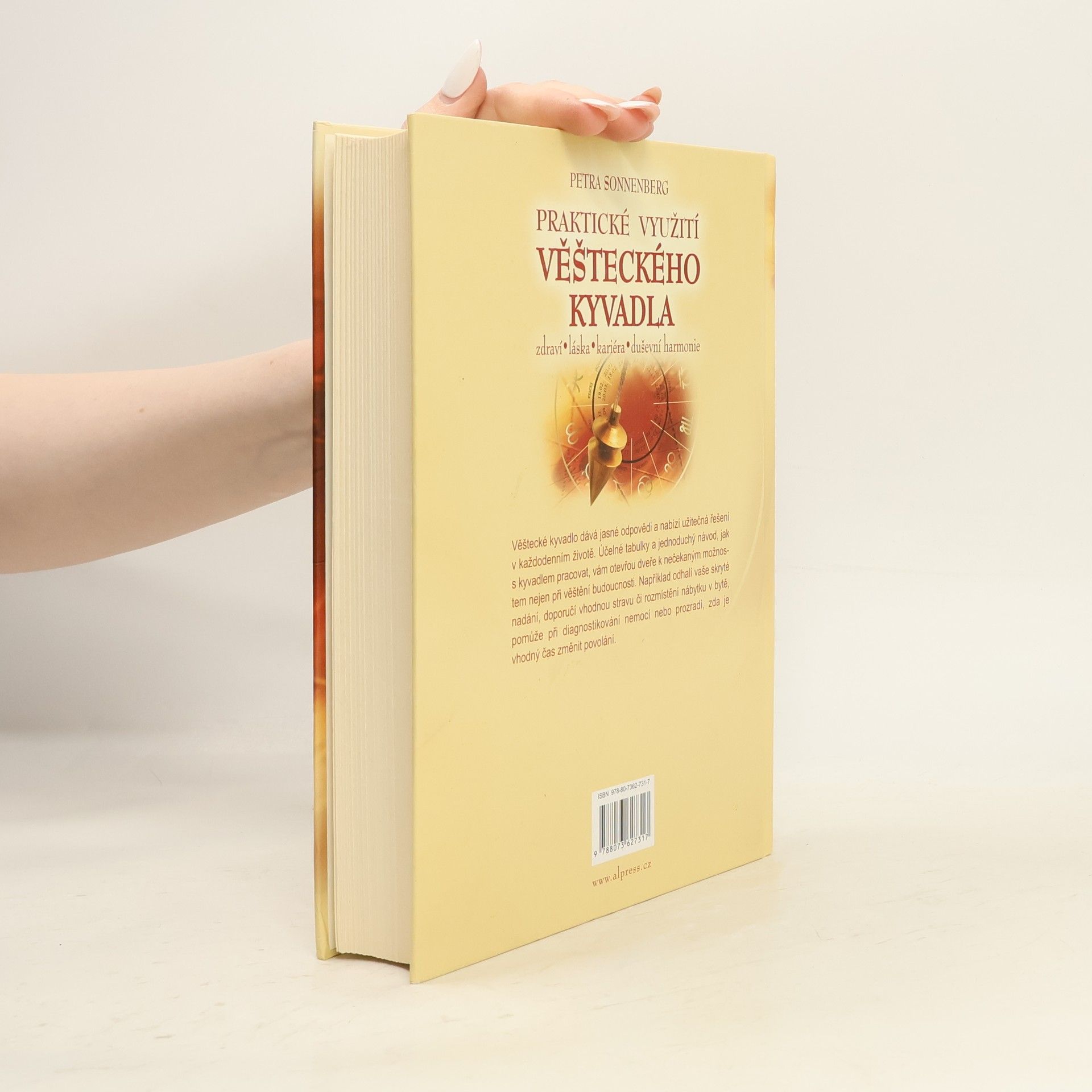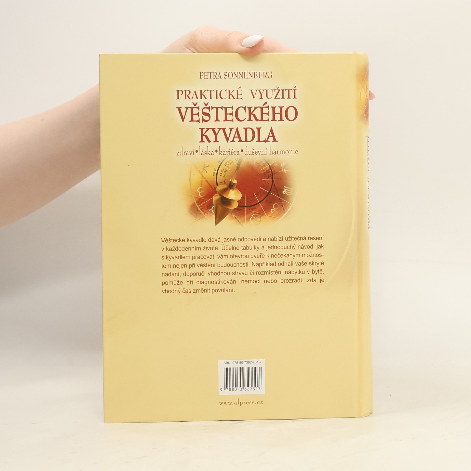 Věštecké kyvadlo dává jasné odpovědi a nabízí užitečná řešení v každodenním životě. Účelné tabulky a jednoduchý návod, jak s kyvadlem pracovat, vám otevřou dveře k nečekaným možnostem nejen při věštění budoucnosti. Například odhalí vaše skryté nadání, doporučí vhodnou stravu či rozmístění nábytku v bytě, pomůže při diagnostikování nemocí nebo prozradí, zda je vhodný čas změnit povolání.