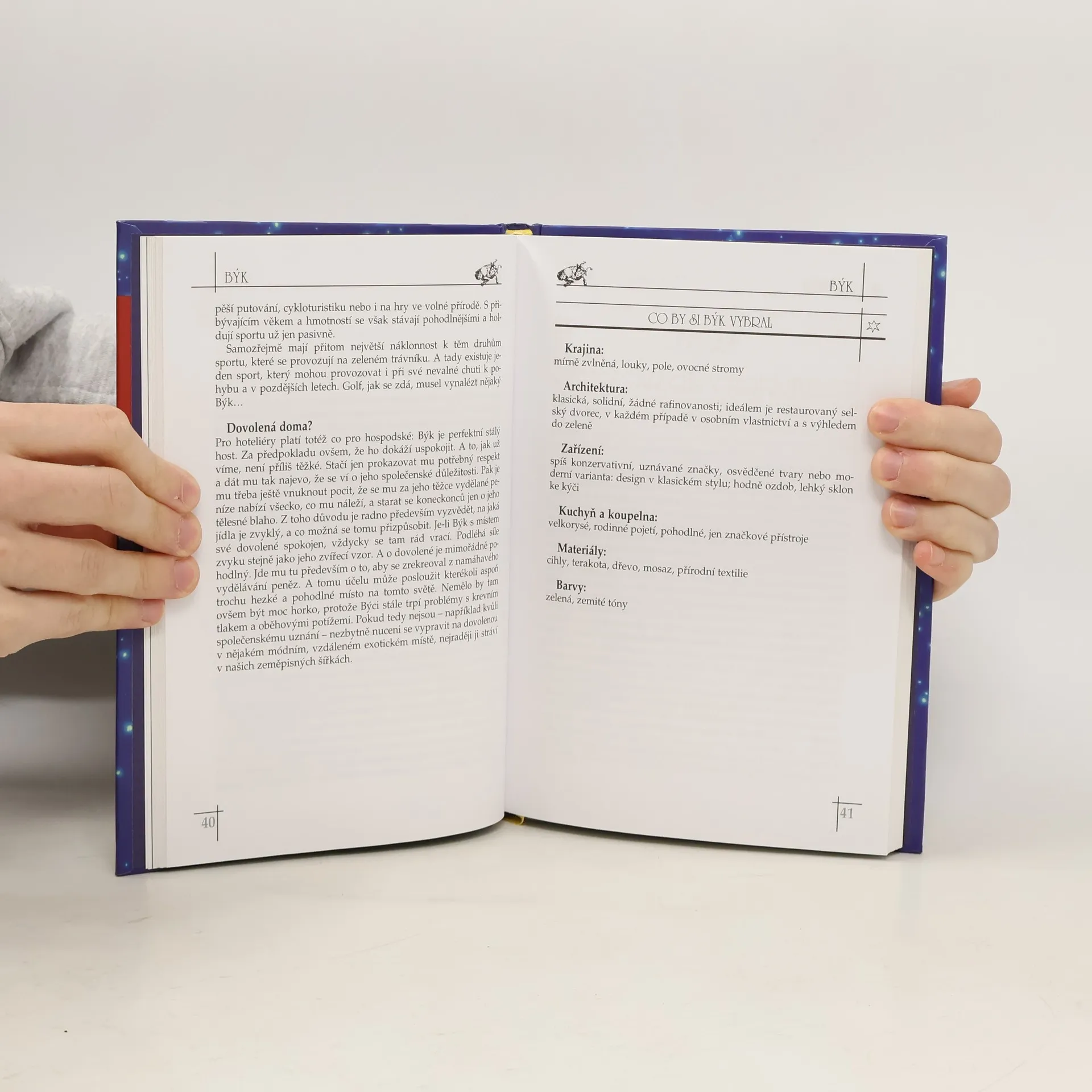 Astrologický místopis, který vám odhalí z hvězdné perspektivy, proč ten člověk dělá nebo upřednostňuje to a ten zase tohle, a získáte tak solidní a vtipnou sondu do nitra lidské povahy. Víte, jaké prostředí si zvolí pro svou dovolenou Štír? Nebo jak si zařídí pokoj Lev? A proč si Raci nejraději vybírají bydlení u vody a u lesa co nejblíže k přírodě? Na to zná odpovědi knížka Gerdy Rogersové. Ale poskytne i něco navíc: solidní a vtipně napsanou sondu do nitra lidské povahy. Dozvíme se, proč pro některé lidi platí, že nejdříve je povinnost a pak zábava, proč zase pro některé pořádek není tou nejdůležitější věcí na světě nebo proč je pro někoho krásně upravený stůl větším potěšením než obsah talíře. Autorka zkoumá z hvězdné perspektivy, proč ten má rád to a ten zas tohle a z jejího zkoumání si můžeme ledacos vzít k srdci a obohatit nejen své okolí, ale i sebe.