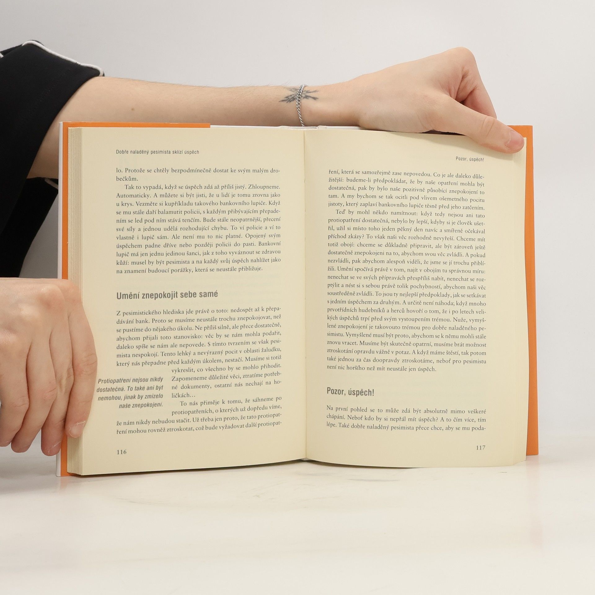 Kniha vtipnou formou popisuje speciální odnož pesimistů, a sice pesimistu dobře naladěného. Od optimistů se liší tím, že není skálopevně přesvědčen o tom, že mu musí vždy a všechno vyjít, na rozdíl od pesimistů to zase nemusí být nutně škarohlíd a morous a nevzdává své snažení předčasně. Jeho strategie tkví v tom, že příliš nevěří ve svůj úspěch, naopak, předvídá možnost výskytu komplikací a nevylučuje případný nezdar. Paradoxně ho tento přístup dovede nejdál, protože počítá se všemi možnými (i nemožnými) nástrahami, které ho mohou cestou k cíli potkat. Vypořádá se s nimi a jeho úspěch je tak téměř zaručen. Poznejte jej blíže a pozorujte, jak se chová v nejrůznějších situacích. Přečtete si několik příběhů, nastiňujících odlišné chování a jednání optimistů, pesimistů a dobře naladěných pesimistů. Při autorově vyprávění a popisech se rozhodně nebudete nudit. Možná vám bude uvažování dobře naladěného pesimisty tak blízké, že je přijmete za své.