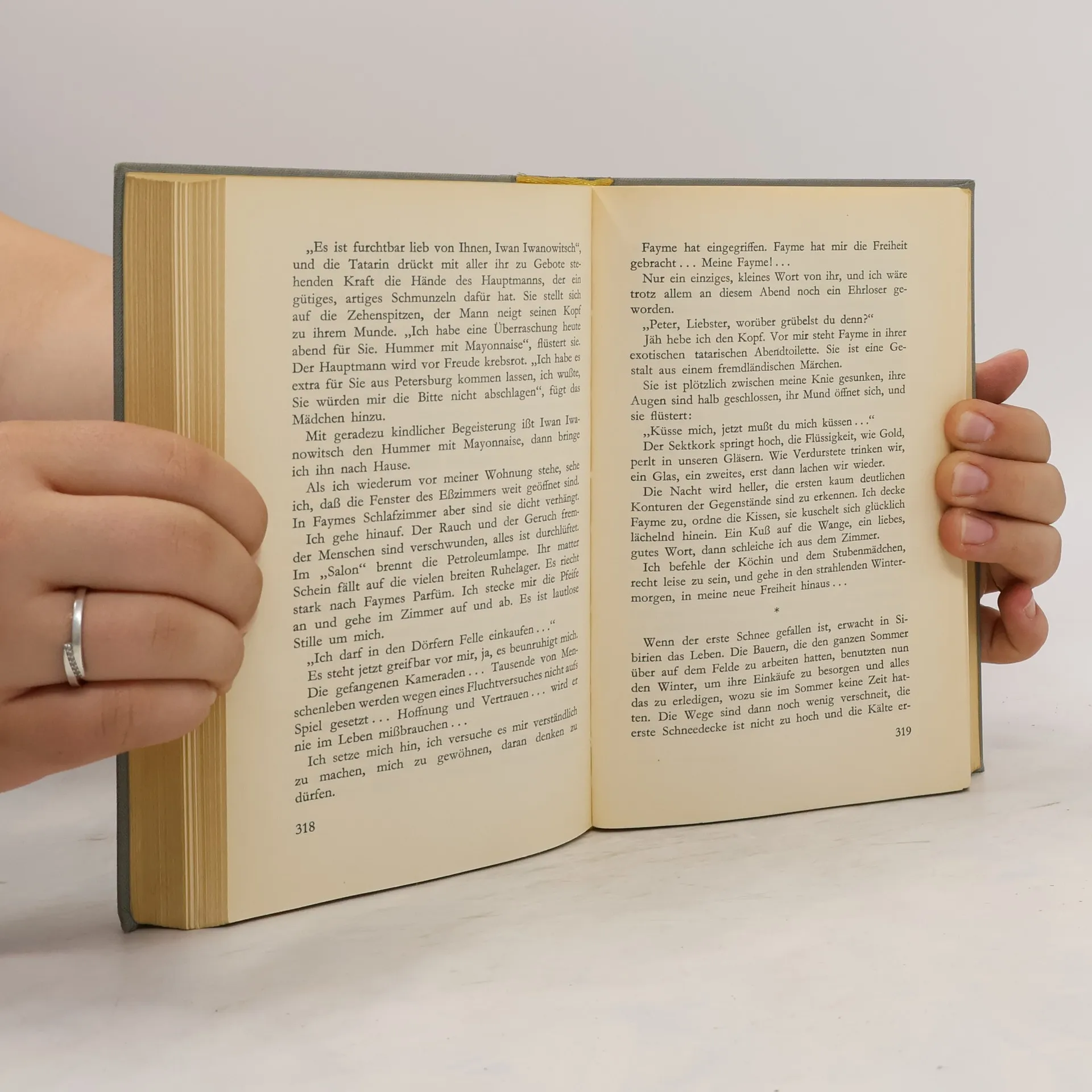 10. August 1914. Beim Versuch, über die russisch-finnische Grenze zu fliehen, wird Theodor Kröger verhaftet. Von diesem Augenblick an ist er der Zaristischen Kriegsjustiz unentrinnbar ausgeliefert. Die Anklage lautet auf Mord und Spionage. Trotz härtester Verhörmethoden und systematischer Folterungen gelingt es nicht, ihm ein Geständnis abzuringen. Er wird zum Tode verurteilt. Einflußreichen Freunden im Hintergrund verdankt er jedoch seine Begnadigung zu lebenslänglicher Verbannung nach Sibirien. Hier erwarten ihn neue Abenteuer und Gefahren. Da sind die Mißstände in der kleinen Urwaldstadt Nikitino und die grausame Lage der in der Nähe internierten Kriegsgefangenen - aber auch Fayme, das schöne Tartarenmädchen, das sich seiner Liebe mit zarter und tiefer Leidenschaft öffnet, einer Liebe, die wie ein heiteres Abschiednehmen aus der Bitterkeit des Vergangenen seinem Leben einen neuen, glücklichen Sinn verheißt... So außergewöhnlich die Situationen sind und so entlegen die sibirische Landschaft für unser westliches Auge, die Kröger mit brillanter Schärfe und großer menschlicher Einfühlung beschreibt, so faszinierend gelingt es ihm, den Leser hinter dem Einzigartigen des Erlebten und Erlittenen jene Spur wieder aufnehmen zu lassen, die seine Odyssee durch Sibirien als einen Leidensweg für die vielen, die vor und nach ihm dorthin verbannt wurden, markiert hat.