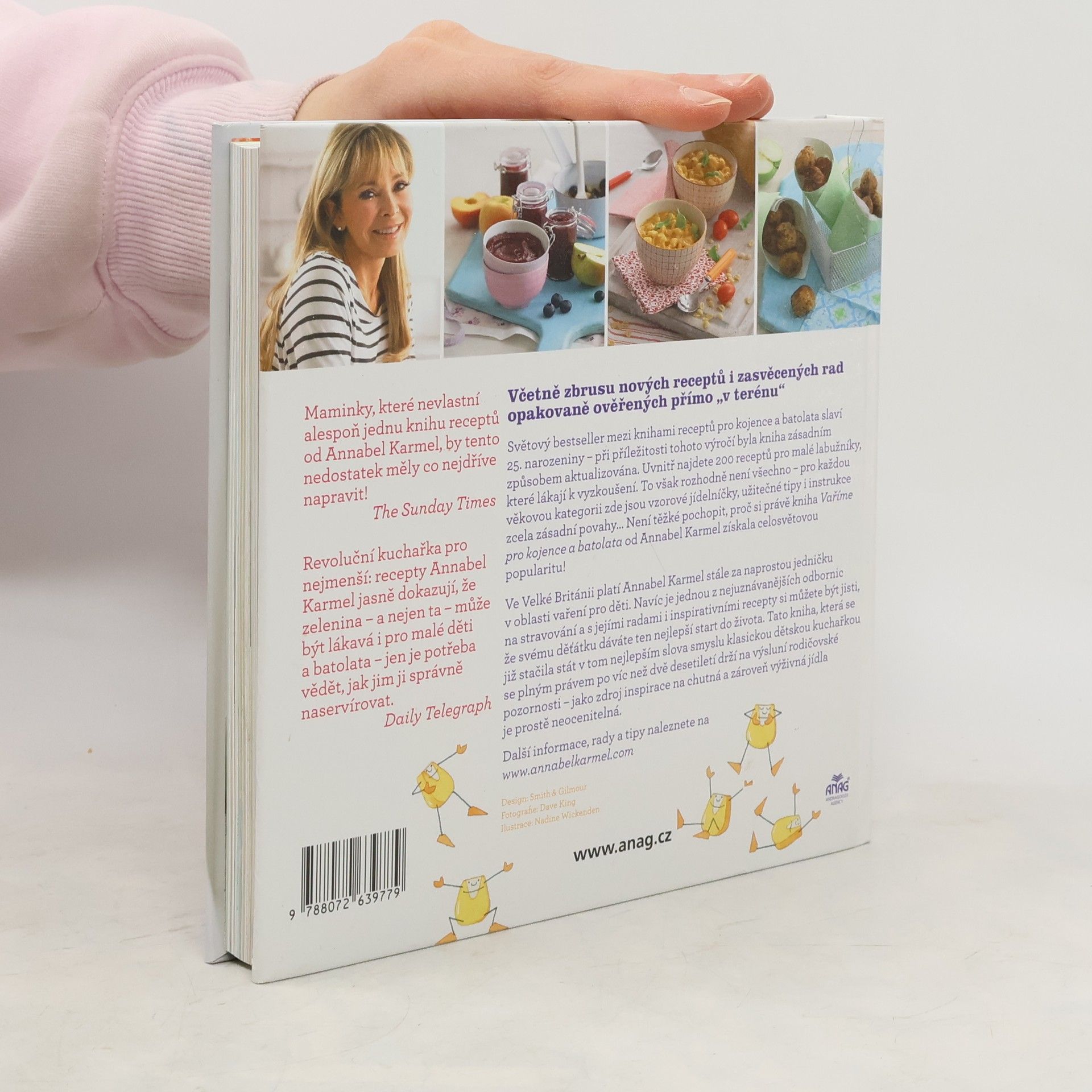 200 receptů na rychlé, snadné a zdravé pokrmy. Moderní a ucelená příručka pro moderní maminku – kuchařka, ve které autorka představuje recepty na výživné a chutné pokrmy pro miminka a batolata, vyšla poprvé v roce 1991. Od té doby se z ní stal vzor pro všechny maminky na celém světě. Naprostý bestseller mezi kuchařkami pro děti. Řada doporučení, nadšené, dobře nakrmené a spokojené děti a pozitivní hodnocení vás jistě přesvědčí o tom, že tato kniha zůstává mezi dětskými kuchařkami bestsellerem číslo jedna. Annabel v ní představuje kolekci svých ověřených lákavých receptů. Kromě toho vám předvede tipy, jak při přípravě jídla pro vaše nejmenší ušetřit čas. Nově v tomto vydání. V přepracovaném vydání naleznete mimo jiné 29 nových receptů a rovněž nejnovější odborné informace týkající se dětské výživy. Bestseller mezi kuchařkami pro děti je nyní ještě lepší než předtím. Skvělou pomůckou může být i velký plakát s přehledným schématem popisujícím odstavování miminka krok za krokem a přechod na pevnou stravu. Toto praktické schéma si můžete například připevnit na lednici nebo na zeď a mít ho stále na očích.