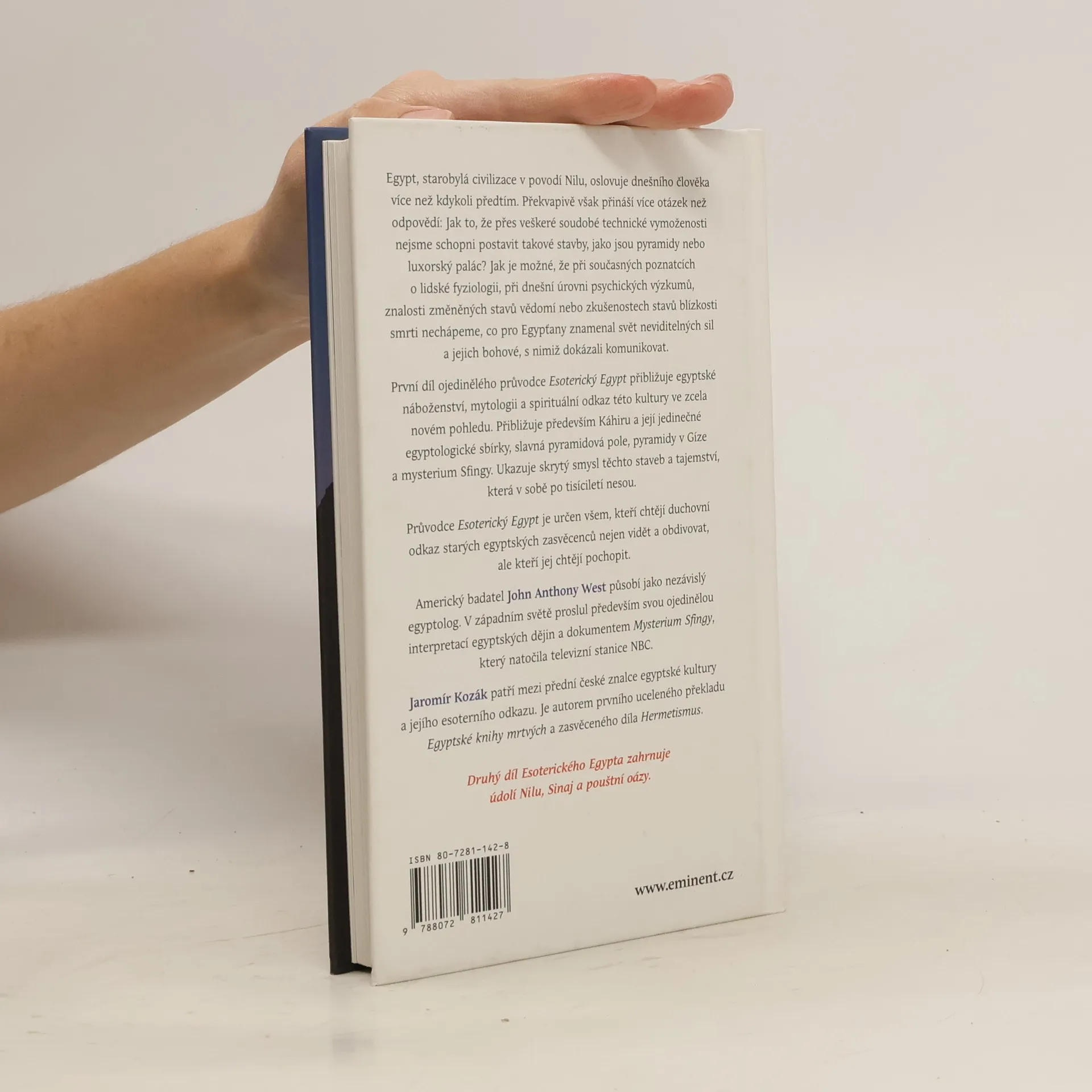 Egypt, starobylá civilizace v povodí Nilu, oslovuje dnešního člověka více než kdy předtím. Překvapivě však přináší více otázek než odpovědí: Jak to, že přes veškeré soudobé technické vymoženosti nejsme schopni postavit takové stavby, jako jsou pyramidy nebo luxorský palác? Jak je možné, že při současných poznatcích o lidské fyziologii, při dnešní úrovni psychických výzkumů, znalosti změněných stavů vědomí nebo zkušenostech stavů blízkosti smrti nechápeme, co pro Egypťany znamenal svět neviditelných sil a jejich bohové, s nimiž dokázali komunikovat. První díl ojedinělého průvodce ukazuje egyptské náboženství, mytologii a spirituální odkaz této kultury ve zcela novém pohledu. Přibližuje především Káhiru a její jedinečné egyptologické sbírky, slavná pyramidová pole, pyramidy v Gíze, a mystérium Sfingy. Odhaluje skrytý smysl těchto staveb a tajemství, která v sobě po tisíciletí nesou. Průvodce Esoterický Egypt je určen všem, kteří chtějí duchovní odkaz starých egyptských zasvěcenců nejen vidět a obdivovat, ale kteří jej chtějí pochopit.