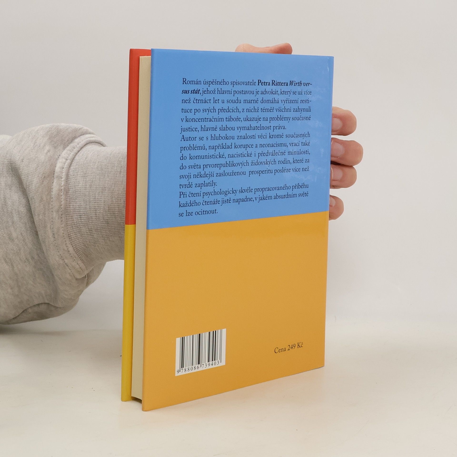 Román úspěšného spisovatele Petra Rittera Wirth versus stát, jehož hlavní postavou je advokát, který se už více než čtrnáct let u soudu marně domáhá vyřízení restituce po svých předcích, z nichž téměř všichni zahynuli v koncentračním táboře, ukazuje na problémy současné justice, hlavně slabou vymahatelnost práva. Autor se s hlubokou znalostí věci kromě současných problémů, například korupce a neonacismu, vrací také do komunistické, nacistické i předválečné minulosti, do světa prvorepublikových židovských rodin, které za svoji někdejší zaslouženou prosperitu posléze více než tvrdě zaplatily. Při čtení psychologicky skvěle propracovaného příběhu každého čtenáře jistě napadne, v jakém absurdním světě se lze ocitnout.