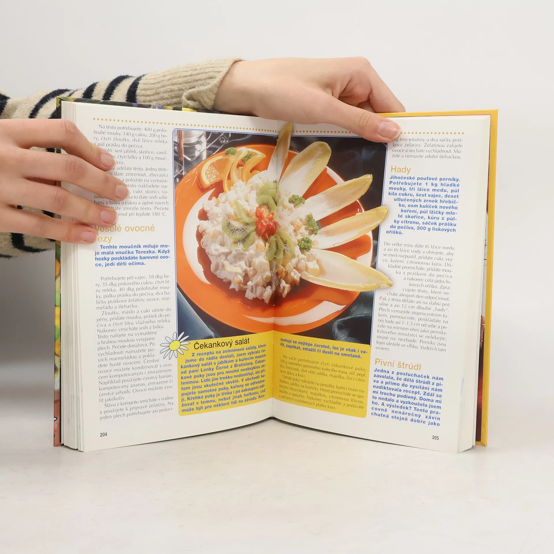 V roli šéfkuchařek se představují populární rozhlasové a televizní moderátorky a hlasatelky Stanislava Lekešová, Viola Ottová, Jaroslava Panýrková, Daniela Pavlíková, Hana Švejnohová a Milena Vostřáková. Vyprávějí kulinářské příběhy a přitom prozrazují leccos zajímavého i z kuchařského umění svých slavných přátel - zpěváků, herců a politiků. Autorky vaří podle svých vlastních rodinných a nejlepších posluchačských receptů. Mezi téměř 700 předpisy na polévky, předkrmy, hlavní jídla, saláty a nejrůznější speciality najde inspiraci každá kuchařka. Autorská spolupráce: Marie Formáčková.