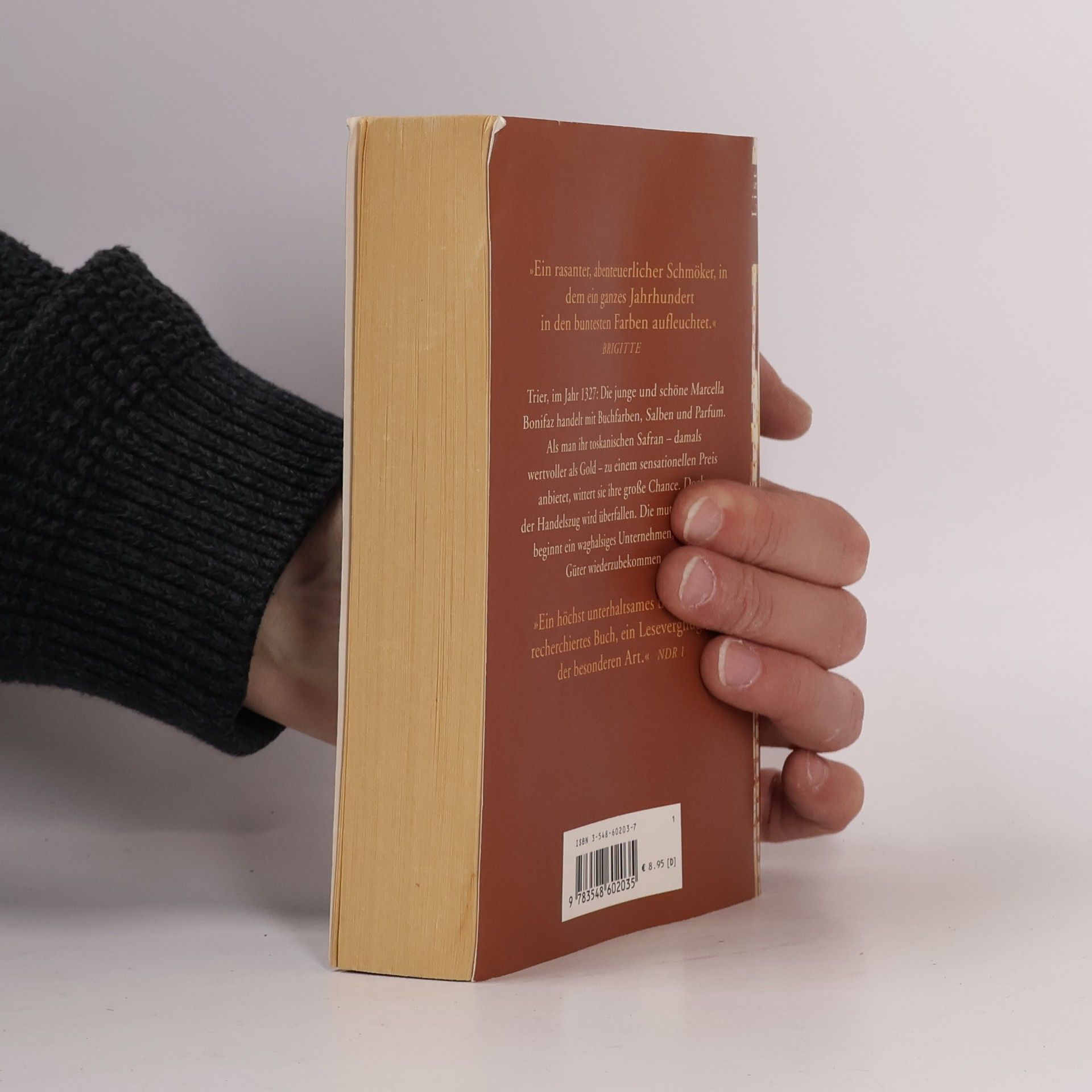 Trier, im Jahr 1327: Die junge und schöne Marcella Bonifaz handelt mit Buchfarben, Salben und Parfum. Als man ihr toskanischen Safran - damals wertvoller als Gold - zu einem sensationellen Preis anbietet, wittert sie ihre große Chance. Doch der Handelszug wird überfallen. Die mutige Marcella beginnt ein waghalsiges Unternehmen, um ihre Güter wiederzubekommen...